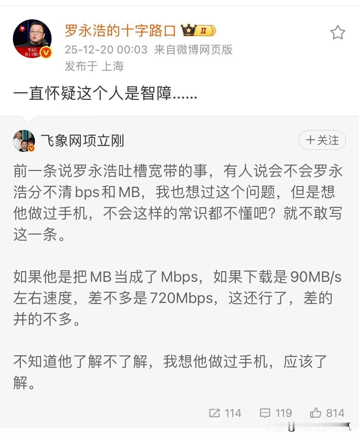 精彩啊 罗永浩又跟项立刚干上了 刚子嘛,懂的都懂 网络上是墙头草见风使舵的 啥有流量就吹啥 凭他那两下子没法跟罗胖子抗衡 且看他如何接招 罗永浩 [捂脸][捂脸][捂脸]