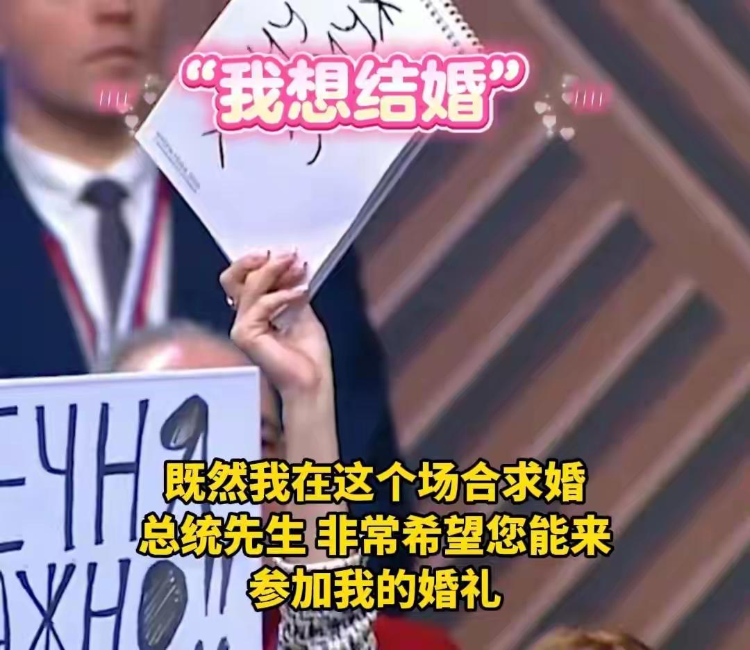 没想到普京也这么八卦。 12月19日,普京在年度记者会上,发现了有趣的一幕。 他从台上望去,只看到观众席上有一位年轻人举着一块牌子。 这块牌子上,用红色和黑色的笔标写着“我想结婚”。 普京瞬间对这个话题很感兴趣,于是将话筒递给了这位年轻人。 这位年轻人是一位来自叶卡捷琳堡的23岁男记者。 他向普京介绍道,自己和女友已经相恋8年,并且在现场借着话筒向女友告白求婚,真的是十分浪漫,同时还邀请普京出席两人的婚礼。 这位男记者还透露,目前两人想要结婚生子,但是结婚要买房子,如果现在贷款买一套一居室公寓,那么他每个月要还5万卢布,还款的期限为30年。 普京显然对这个话题十分感兴趣,因为在这场记者会上,之前就有一位女记者询问普京是不是恋爱了。 普京也是面带笑容,直言不讳。 笑着点了点头说,是的。 并且当场承认了自己正在恋爱中。 怪不得普京之后会八卦的说,你们两个人谈了8年,关键是你现在才23岁,那么也就是说你们在15岁就开始恋爱了。 不得不说,现在的年轻人,果然是年轻人! 随后,普京指出,早点结婚也是一件好事,自己也会支持年轻家庭。 如此看来,普京为了俄罗斯的生育率,也是煞费苦心。 要知道目前俄罗斯的生育率处于极低的水平,总和生育率仅1.3左右,远低于维持人口世代更替所需的2.1。而且正在持续下降,目前已经成为重大国家危机。 对于此事大家怎么看?不妨在评论区留下您的看法。