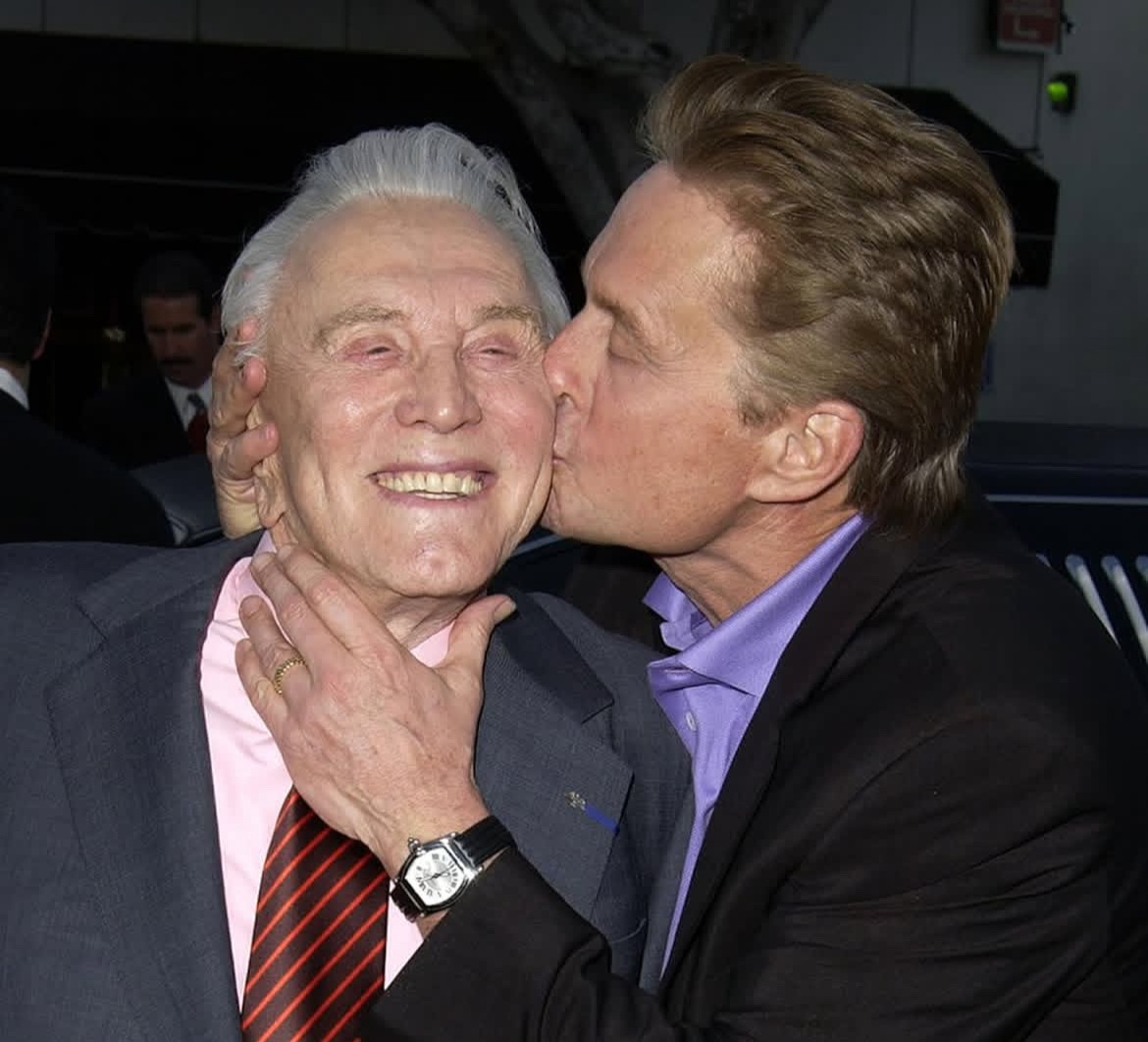 【来自投稿】图一 1949年 美国电影演员柯克·道格拉斯和儿子迈克尔·道格拉斯 (父亲33岁 儿子5岁 ) 图二 2016年 柯克·道格拉斯和儿子迈克尔·道格拉斯 (父亲100岁 儿子72岁) 柯克·道格拉斯三度提名奥斯卡最佳男演员都未得,在1991年获得奥斯卡终身成就奖 , 儿子迈克尔·道格拉斯以电影《华尔街》首次提名,就拿到了奥斯卡影帝 ,此外迈克尔还因为担任《飞跃疯人院》的制片人拿到了奥斯卡最佳电影奖,两座小金人在手,2009年也获得了奥斯卡终身成就奖 但在影坛的影响力上,柯克超过儿子,在1999年美国电影学院公布的《百年最有影响力的一百位演员》中排在第17位