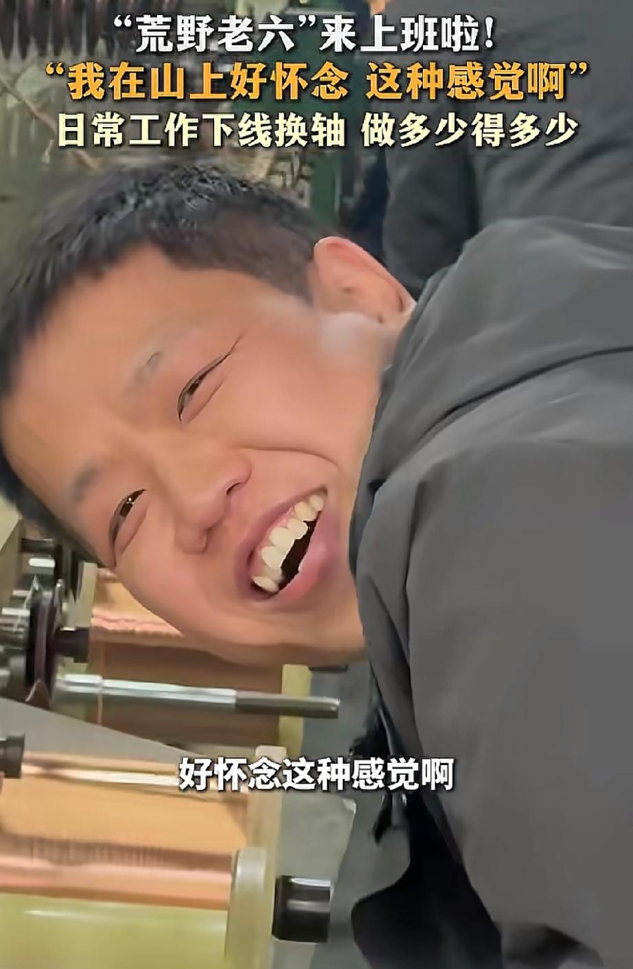 荒野老六回去继续上班了,老板还给了个一万元大红包,老六参赛期间工资照发,这种好老板去哪找去! 经历香香嘴风波,老六估计也想好了自己不适合在网络上飘着,回到自己的工位上脚踏实地的工作才是最可靠的。 老六在单位的工作是换线轴,一人一台机器,有这样的好老板干着也有劲。 说来也奇怪,跑马拉松的那个护士女的,因为业余忙活跑马拉松被大家诟病,老六工作之余参加荒野求生却获得了老板的支持还给红包,咋待遇差别这么大呢?