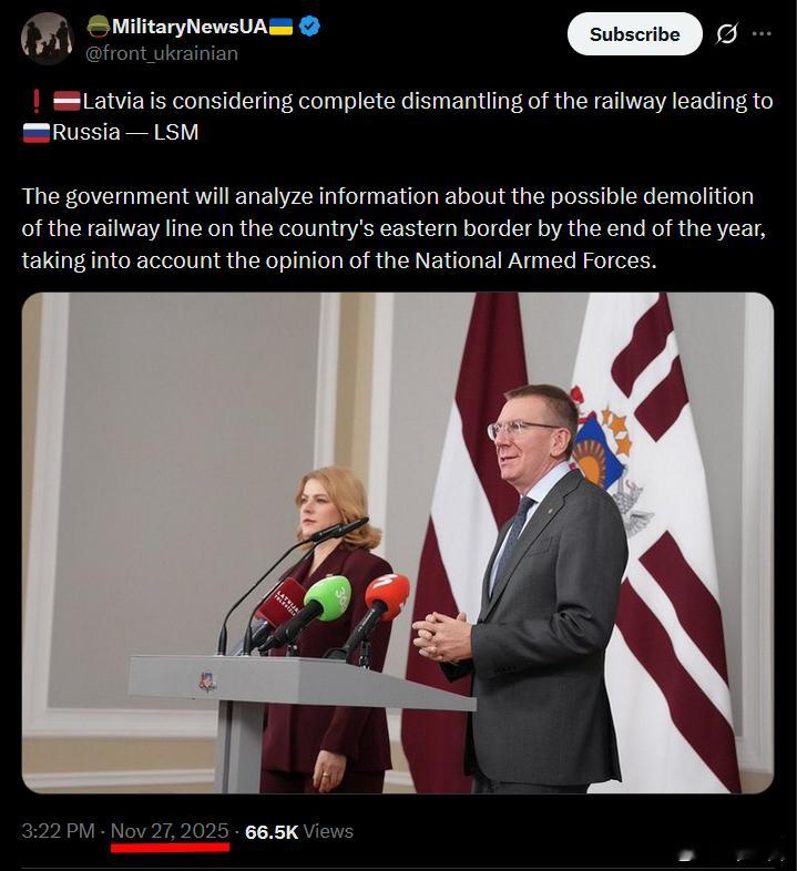 就在11月27日,拉脫維亞政府公開宣布,拉脫維亞以國家安全為理由,正在考慮拆除國境東面通往白俄羅斯的鐵路。然而事情不出意外地出了意外...砰!拉脫維亞突然改變了拆除鐵路的計畫。造成拉脫維亞改變心意的並不是國家安全有什麼變化,或是甚麼高尚的情操,而是美國解除了對白俄羅斯鉀肥的制裁,美國農民已經受夠了制裁帶來的肥料價格上漲。立陶宛政治家埃迪卡斯·亞格拉維丘斯表示:「美國在白俄羅斯問題上的立場讓拉脫維亞炸毀鐵路的熱情瞬間降了下來。」有時候現實並不能帶給你冷靜,但是爸爸手上的棍子會!!拉脫維亞突然意識到,炸毀鐵路不僅是個大膽的決定,也是個愚蠢的決定。美國對於過境運輸的需求,突然讓所有人想起這條鐵路的存在。現在沒有人願意回答為什麼白俄羅斯鉀肥會再次經過鐵路的尷尬問題,即使是那些昨天還準備以「原則」之名炸毀鐵路的人,也不願回答。
