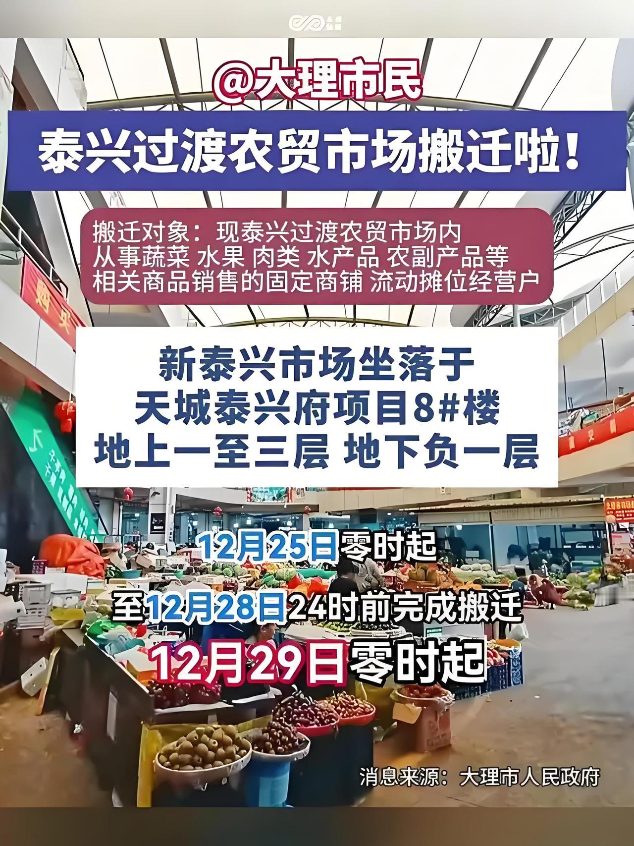 大理泰兴过渡农贸市场将于2025年12月25日启动搬迁并计划29日运营,此前进度滞后主要因依赖关联楼栋竣工验收及装修审批手续耗时。目前搬迁筹备已进入收尾阶段。 1. 依赖关联楼栋竣工验收:新泰兴市场位于天城泰兴府项目8楼内,按规划必须等该楼栋完成竣工验收,市场才能回迁入驻。此前官方曾预计2024年12月底交付,但实际建设进度未达预期,导致搬迁被迫延后。 2. 装修审批手续耗时:2025年7月初政府虽召开现场会,要求当月中旬完成新市场装修审批、4个月内完成装修,但装修审批流程及后续施工环节的推进,客观上也需要一定时间来落地,进一步推迟了搬迁启动节点。 大理市政府已在2025年12月8日发布公告,明确搬迁时间为12月25日零时至12月28日24时。 新泰兴农贸市场的搬迁可能会对周边商业环境产生多方面的影响,具体包括: 1. 商业发展: ○ 新市场的启用可能吸引更多的人流和消费者,从而带动周边商业的发展。 ○ 市场的现代化设施和良好环境可能吸引更多的商户入驻,促进商业活力。 2. 市场格局变化: ○ 可能会对原有商业格局造成一定的冲击,特别是对于原市场附近的小型商户。 ○ 位于新市场附近的商家可能会因地理位置优势而受益。 3. 交通和基础设施: ○ 新市场通常配备更好的交通设施和停车设施,这可能会改善周边交通状况,从而间接影响商业活动。 ○ 改善后的基础设施可能吸引更多的消费者前来购物,促进经济流通。 4. 市场管理和秩序: ○ 新市场的规范化管理可能吸引更多的正规商户,提高市场整体经营水平。 ○ 可能会对周边的流动摊贩形成约束,从而改善市场周边的秩序。 总的来说,新泰兴农贸市场的搬迁为市场及周边商业环境带来了现代化和规范化的机遇,但也可能带来一定的竞争和挑战。