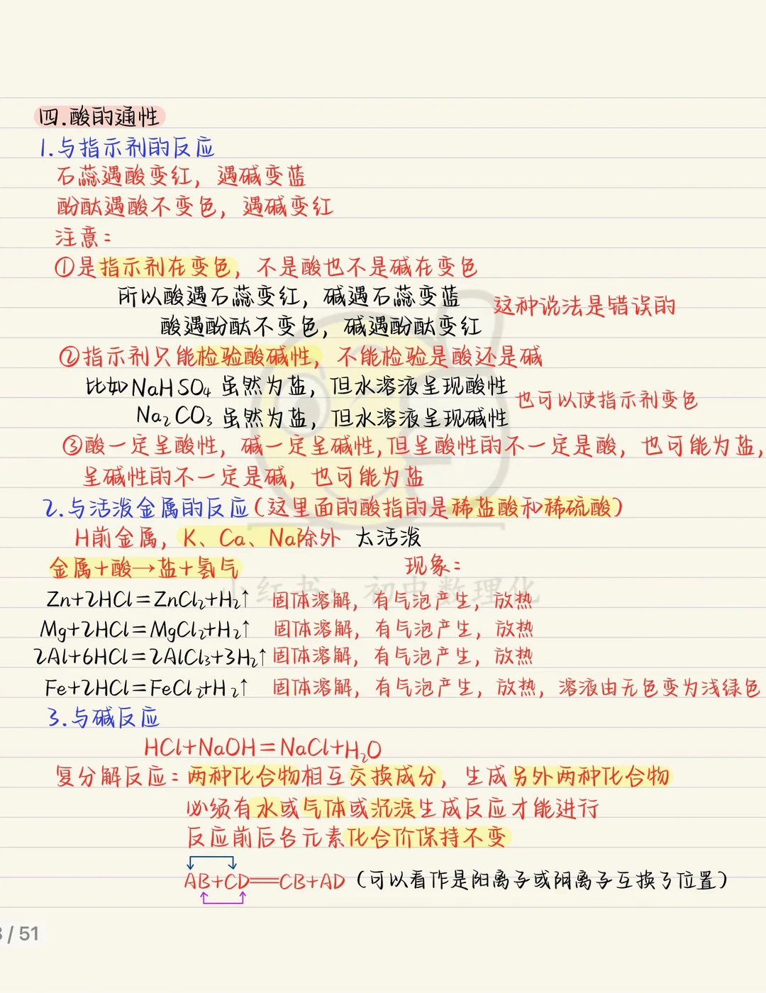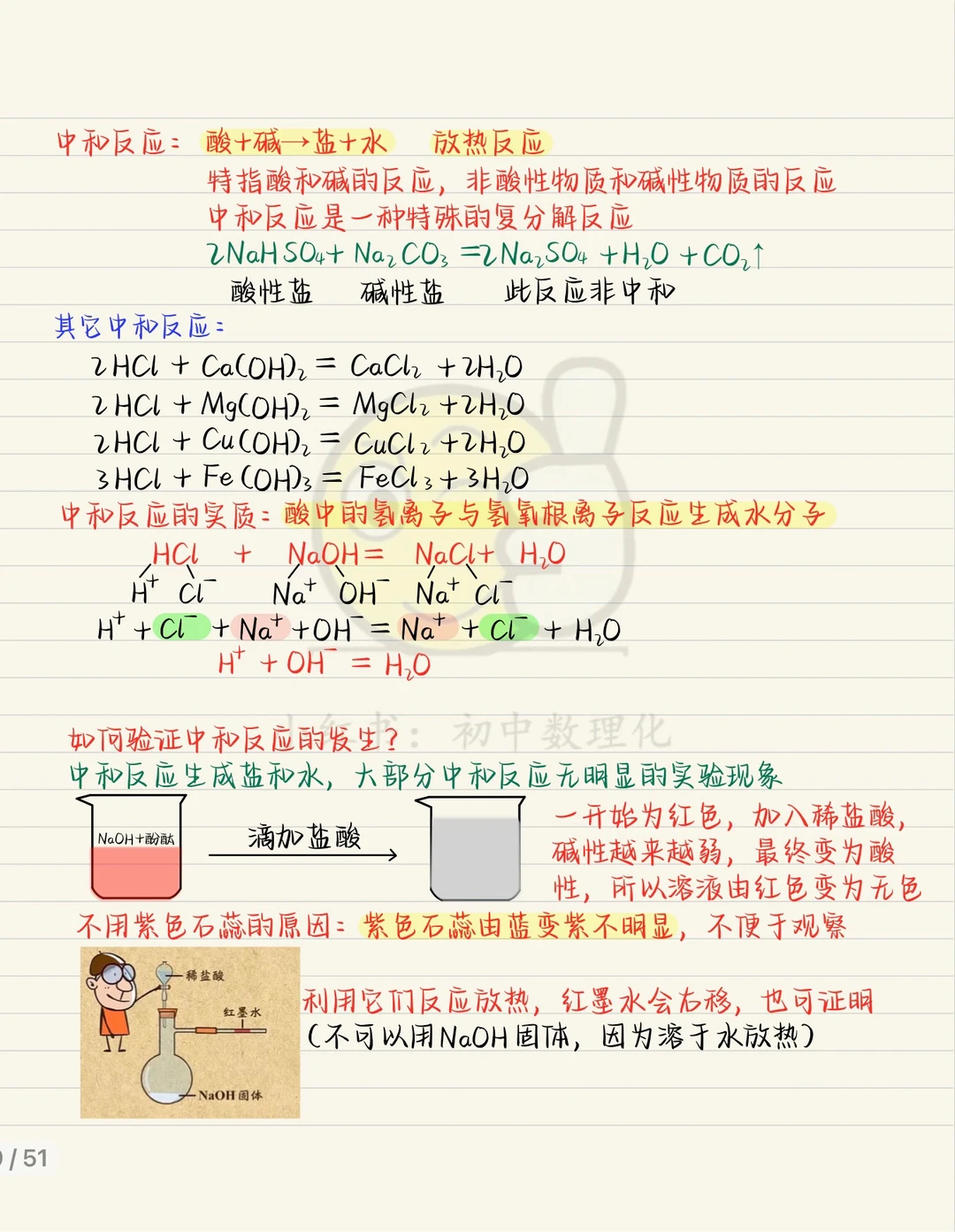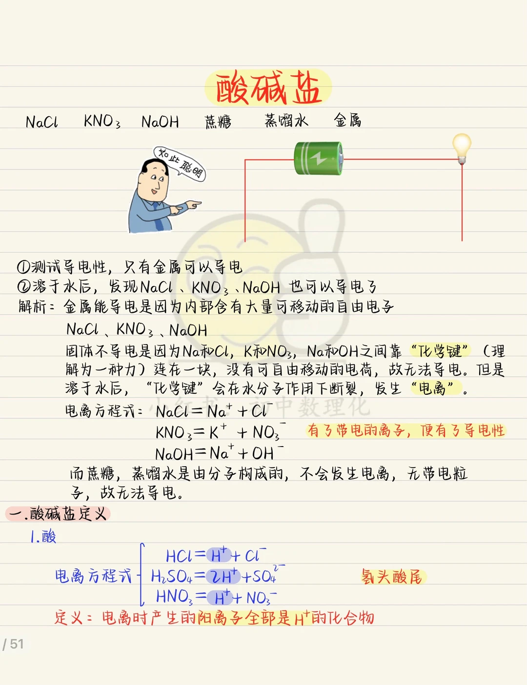 很多同学去年靠这个笔记中考化学都拿下了高分,酸碱盐作为中考难的一部分,掌握一定的方法,其实,化学中考就是送分的科目。内容中为了方便大家理解,穿插了一点高中的知识点,比如电离方程式,离子方程式,这一部分初中生其实也是能够理解的。
