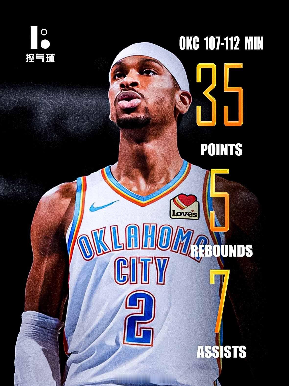 亚历山大连续99场20+ 距历史第一仅差27场!本场比赛亚历山大35分5板7助2断2帽
