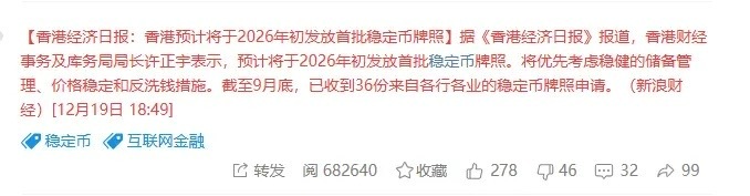 香港预计将于2026年初发放首批稳定币牌照,利好稳定币,数字货币,金融科技,券商方向。稳定币年中爆炒一波,之后熄火,最近持续活跃,翠微股份,恒宝股份,赢时胜,指南针等。年底金融科技,券商高低切轮动,滞涨补涨预期。下周观察能否成为市场潜在轮动主线之一。