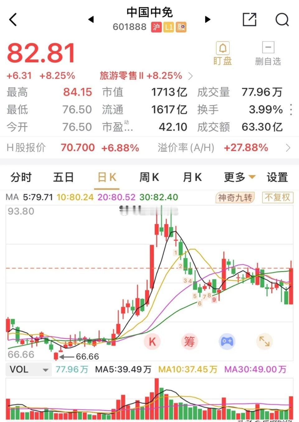 中国中免这免税店概念龙头,大涨8.25%,盘中一度涨停,可惜资金封板意愿不强,涨幅与旅游零售板块涨幅相等。海南正式封关,未必在短时间内能有效提升其经营盈利能力,近两年连续同比下跌的净利润及营收,是否能真正的改善才是值得关注的重点。中国中免42倍的估值,需要年度至少增长30%才能够匹配共估值,26年的预期应至少盈利60亿元左右。这能做到吗?中国中免曾经股价超400.0元,一波轰轰烈烈的行情下,又回到了原点,留下了满地鸡毛,现价如今仅股价高点20%左右。个人观点,勿作操作建议。