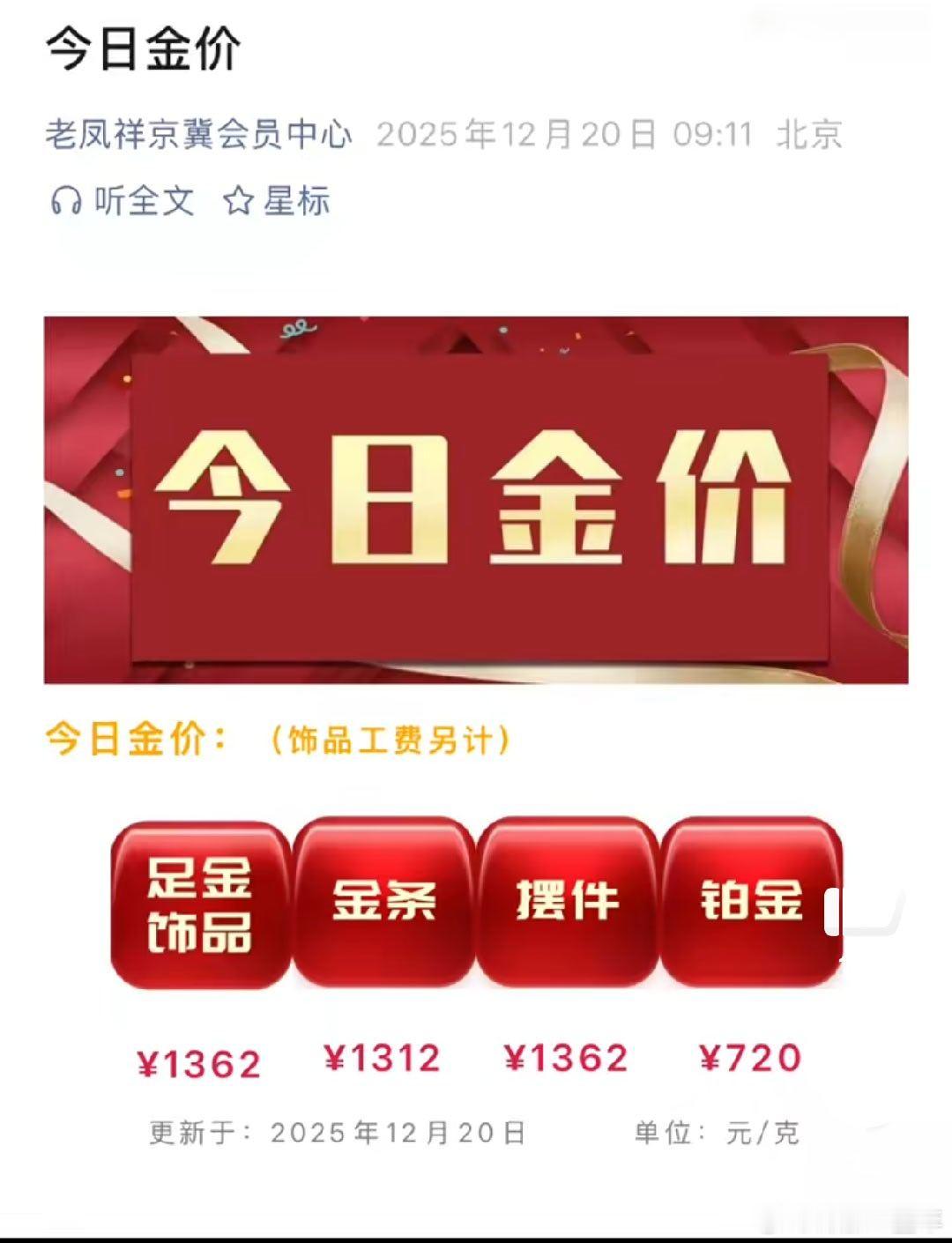 12月20日金价已经不对劲了不是因为涨到1353一克,而是从16号开始就