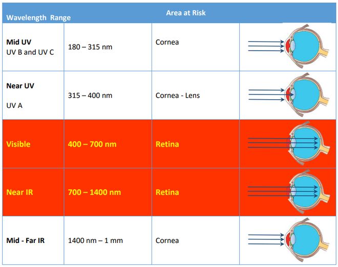 而1400-3000nm的波段,激光基本在角膜和房水处就被吸收了,压根到不了视网膜,所以更安全。