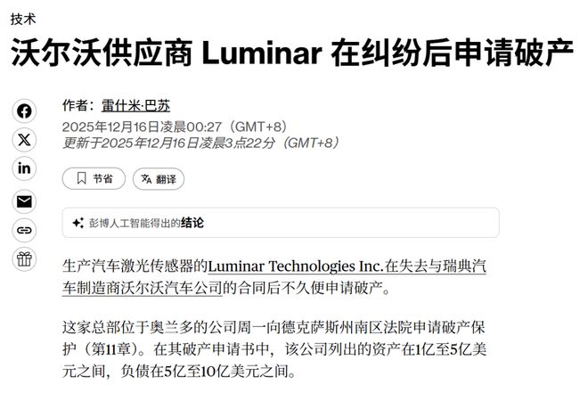 刚说淘汰中国激光雷达,最后希望的Luminar就破产了?
