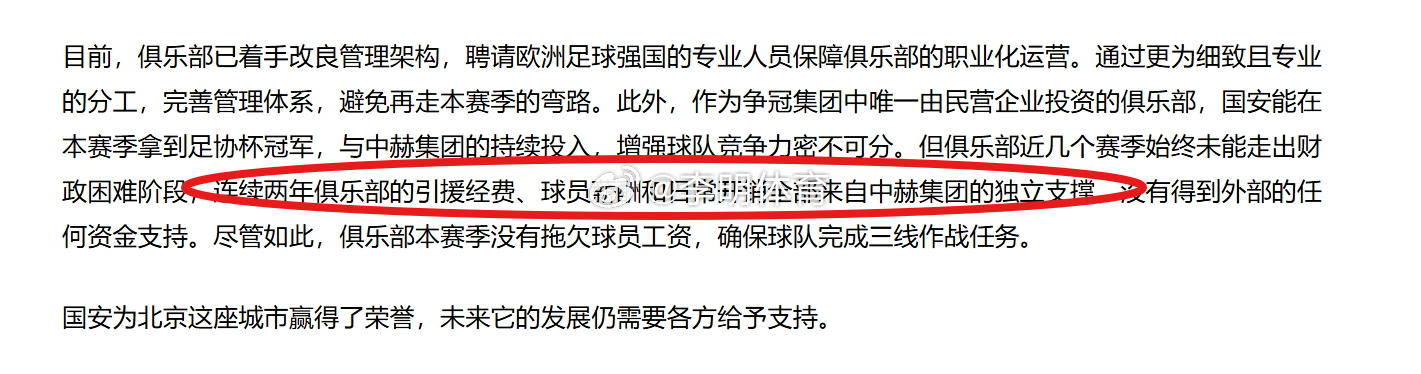 今日官媒发布一篇关注北京国安的文章 主要是说最近钱都是中赫筹集的,但之前也说过上面给了国安资金其实,这部分是借款,利息也要付俱乐部就没动,也看看自己的能力是不是能够赚到其实,除了中赫外,衍生品、门票、周边都是大头,还有大锅饭分到的转播版权和装备。毕竟工体也是中赫的,所以场租省去一大块,门票都是净赚,除了灯光、安保、医疗等每场的投入。另外,衍生品的孚德的合作也很成功,这部分国内就是孚德和聚星两个公司。当然,如果版权开放、装备开放,国安这个体量和还能有不少收入。期待徐老师能够给国安带来更多的营销收入!中超联赛