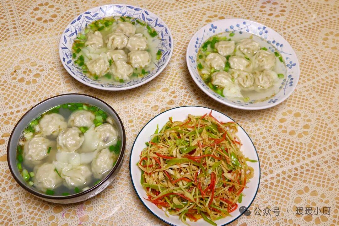 家常美味:鲜肉馅饺子配爽脆小炒,暖心暖胃!🥟🥗一碗饺子,一l盘菜,美味佳肴。