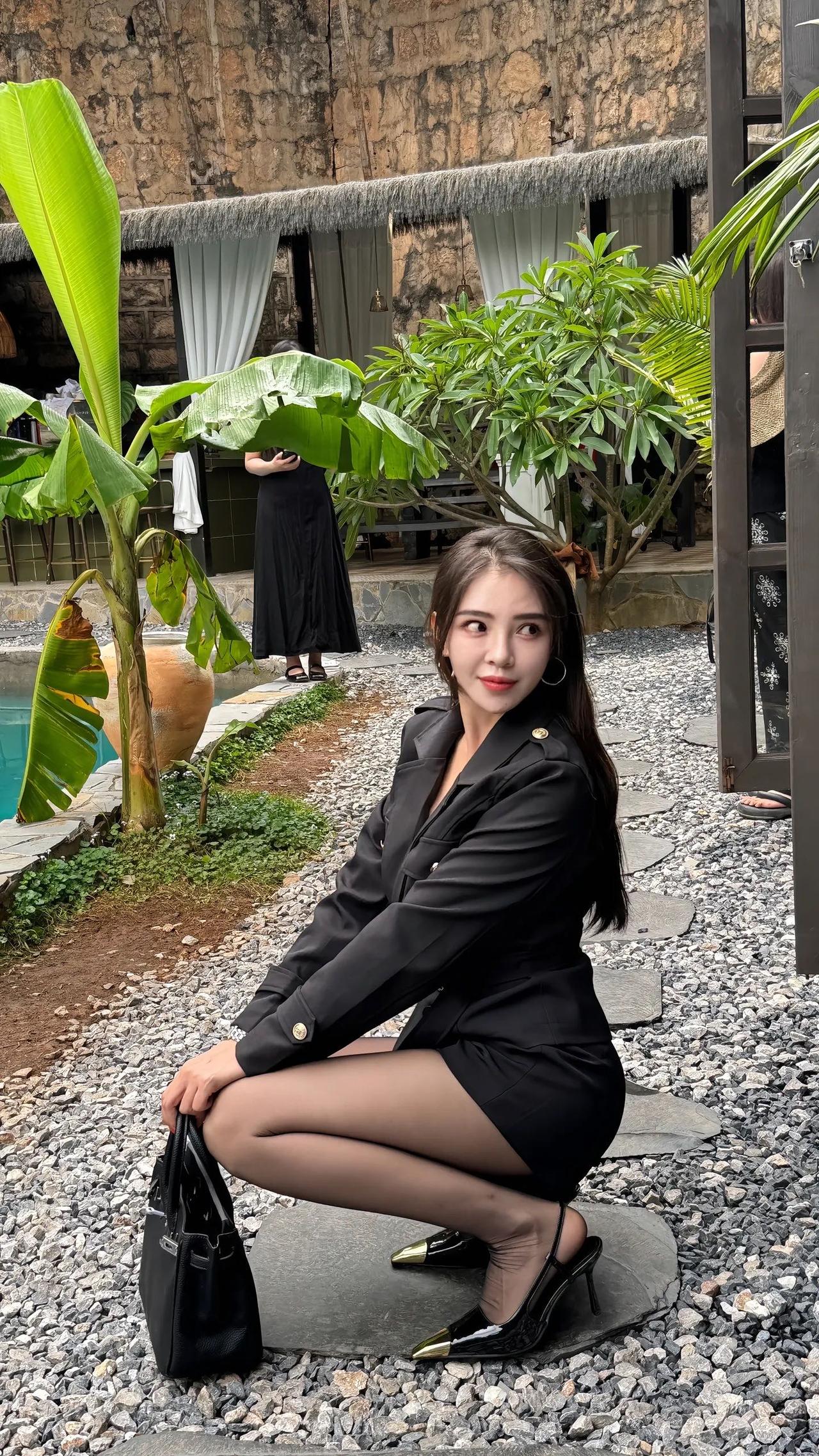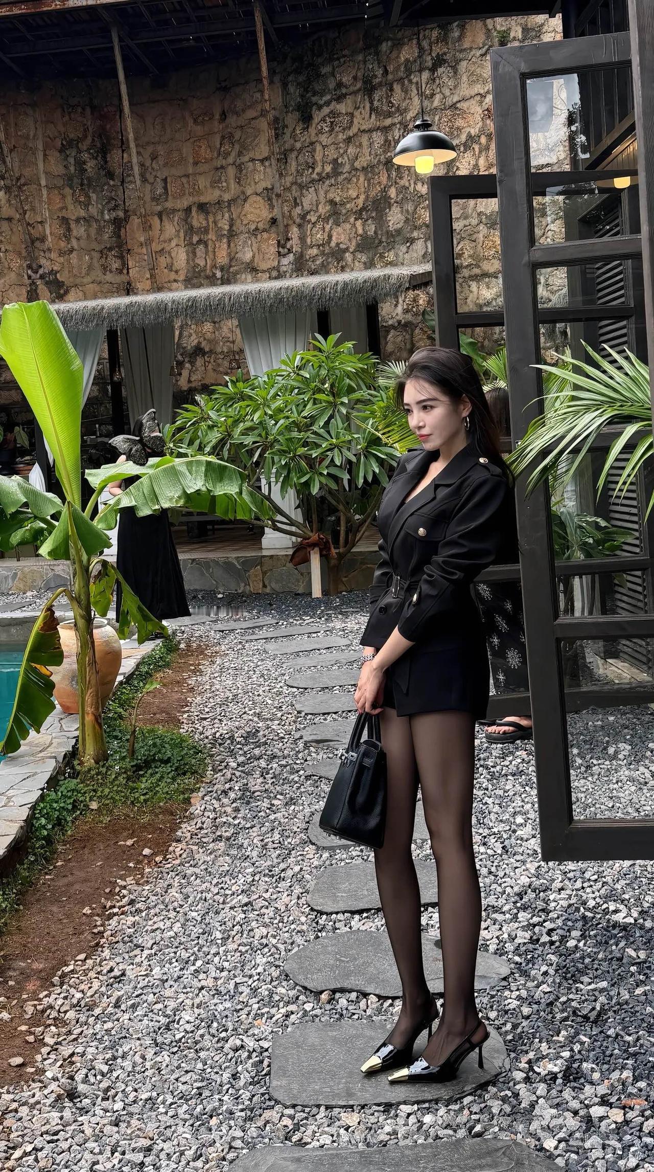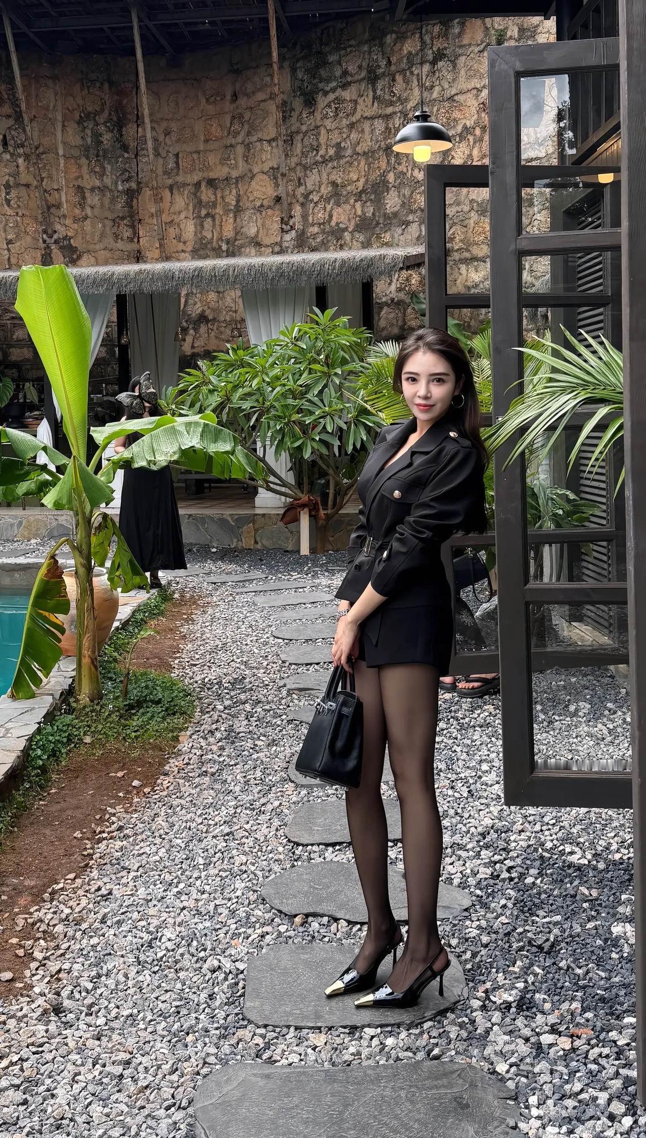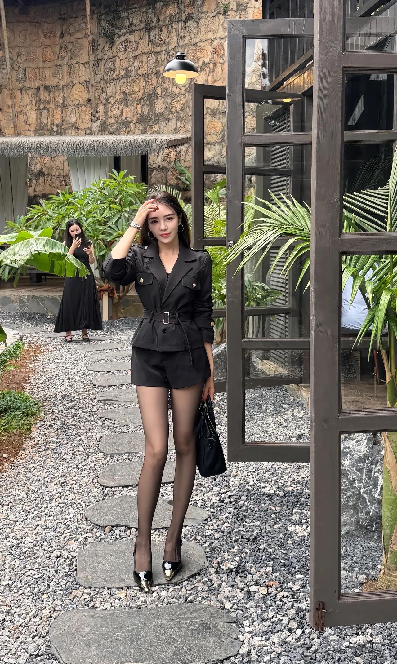 都市时尚风,黑色套装搭配高跟鞋,自信满满!