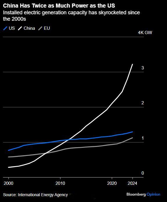 一张图就能解释为什么中国将在人工智能领域取得胜利。 功耗极高的英伟达芯片并非美国的发展方向。 不仅仅是总功率优势,而是功率斜率优势。老常政经人工智能人工智能美国欧盟