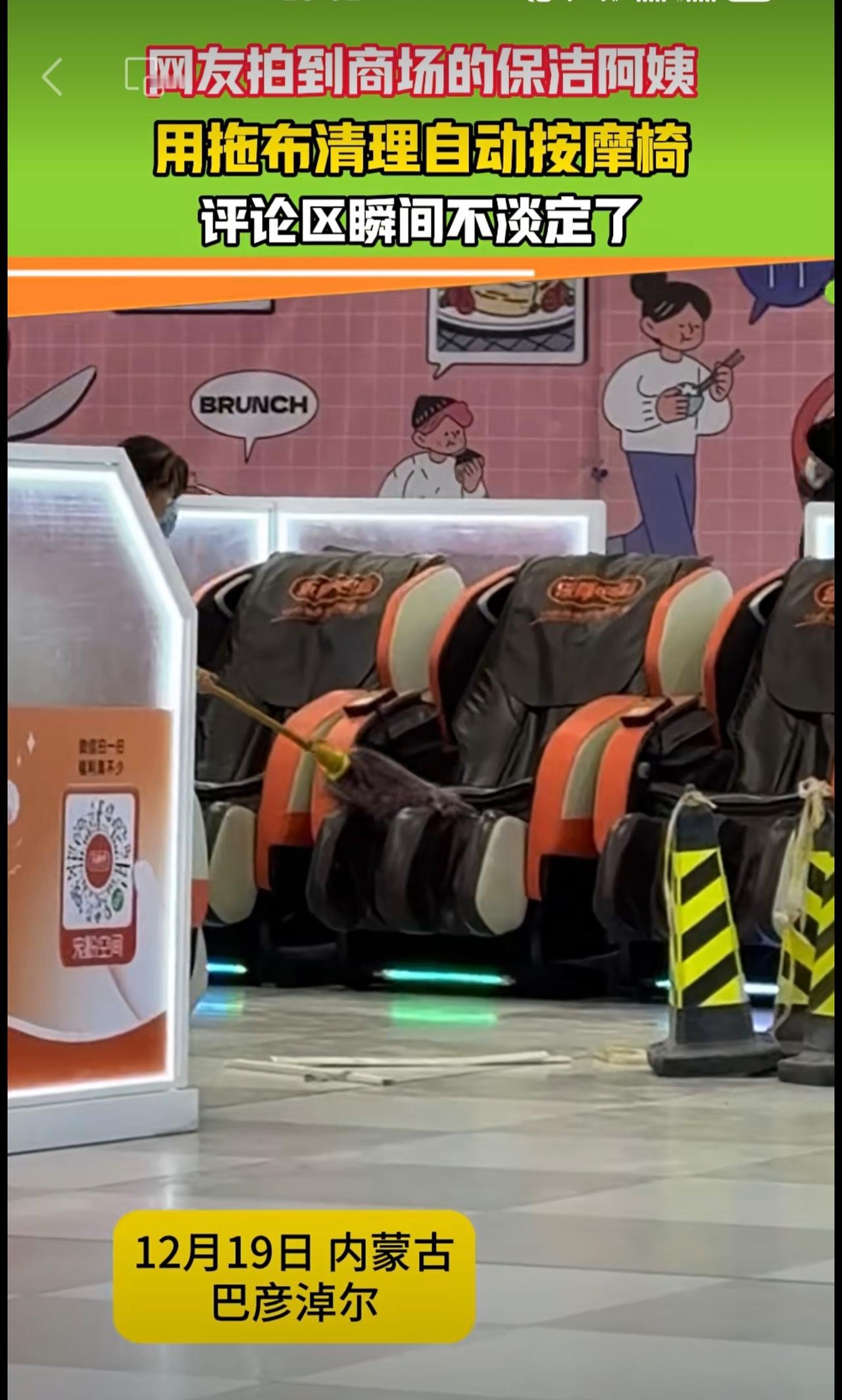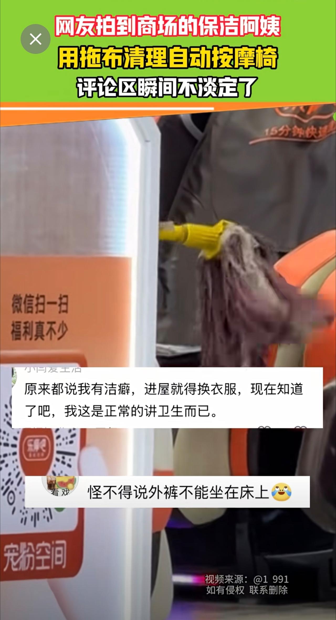 保洁阿姨用拖布清理自动按摩椅,网友不淡定了 按摩椅