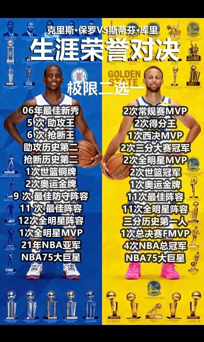 保罗vs库里生涯荣誉对比