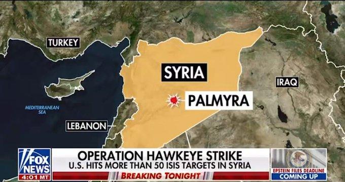 美国军方对叙利亚境内数十个伊斯兰国目标发动了大规模空袭。美国官员称,此次空袭是对美国人员遭袭事件的报复。 美国时间2025年12月19日,美国中央司令部发起代号为“鹰眼打击行动”的大规模军事行动,对叙利亚境内70多个伊斯兰国(ISIS)目标发动空袭和炮击,使用了超过100枚精确制导武器。美国官员明确表示,此次行动是对12月13日ISIS袭击造成美国人员伤亡事件的直接报复。 2025年12月13日,在叙利亚中部古城巴尔米拉附近,一支美叙联合巡逻队遭独狼枪手袭击。袭击造成2名美国陆军士兵和1名美国平民翻译死亡,另有3名美军士兵受伤。 袭击者被当场击毙,美国和叙利亚官员均指其为ISIS同情者或成员。这是阿萨德政权2024年底倒台后,美国在叙利亚首次遭受人员伤亡事件。 特朗普在社媒上发文称,美国正在对ISIS据点实施“非常严厉的报复”,并强调叙利亚新政府“完全支持”此次行动。国防部长皮特·赫格塞思表示:“这不是战争的开始,而是复仇的宣言。我们今天猎杀并消灭了许多敌人,我们将继续这样做”。 叙利亚过渡政府外交部发表声明,重申致力于打击ISIS,确保其在叙境内无安全庇护所,并强调需要加强国际反恐合作。 美军表示可能继续开展后续行动,以遏制ISIS在叙利亚沙漠地区的重组活动。