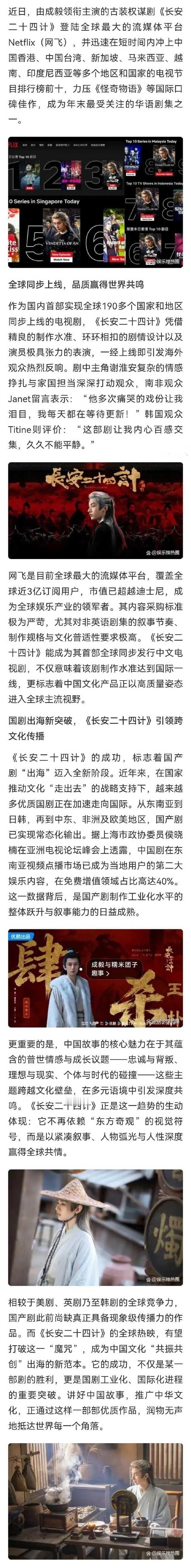 成毅长安二十四计播的太好又有人坐不住了,官方认证国民大剧口碑爆棚。原创“黑马”开创男频古装剧新风貌。作为国内首部实现Netflix全球同步发行的电视剧,一经上线冲进全球榜单掀起收视狂潮。港台新闻纷纷报道这部现象级出海爆火的国产剧。优酷央八品牌广告联名不断,央视业内多方认证“长安”已成为超越地理维度的超级文化符号长安二十四计 灯塔