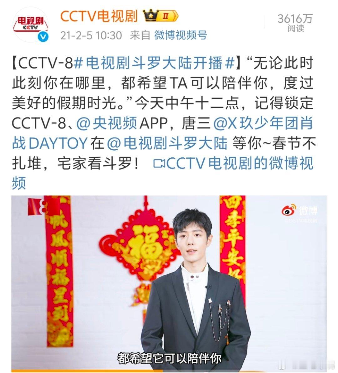 央八唯二中午12:00开播的两部新剧:2021年2月5日《斗罗大陆》2025年12月27日《逍遥》