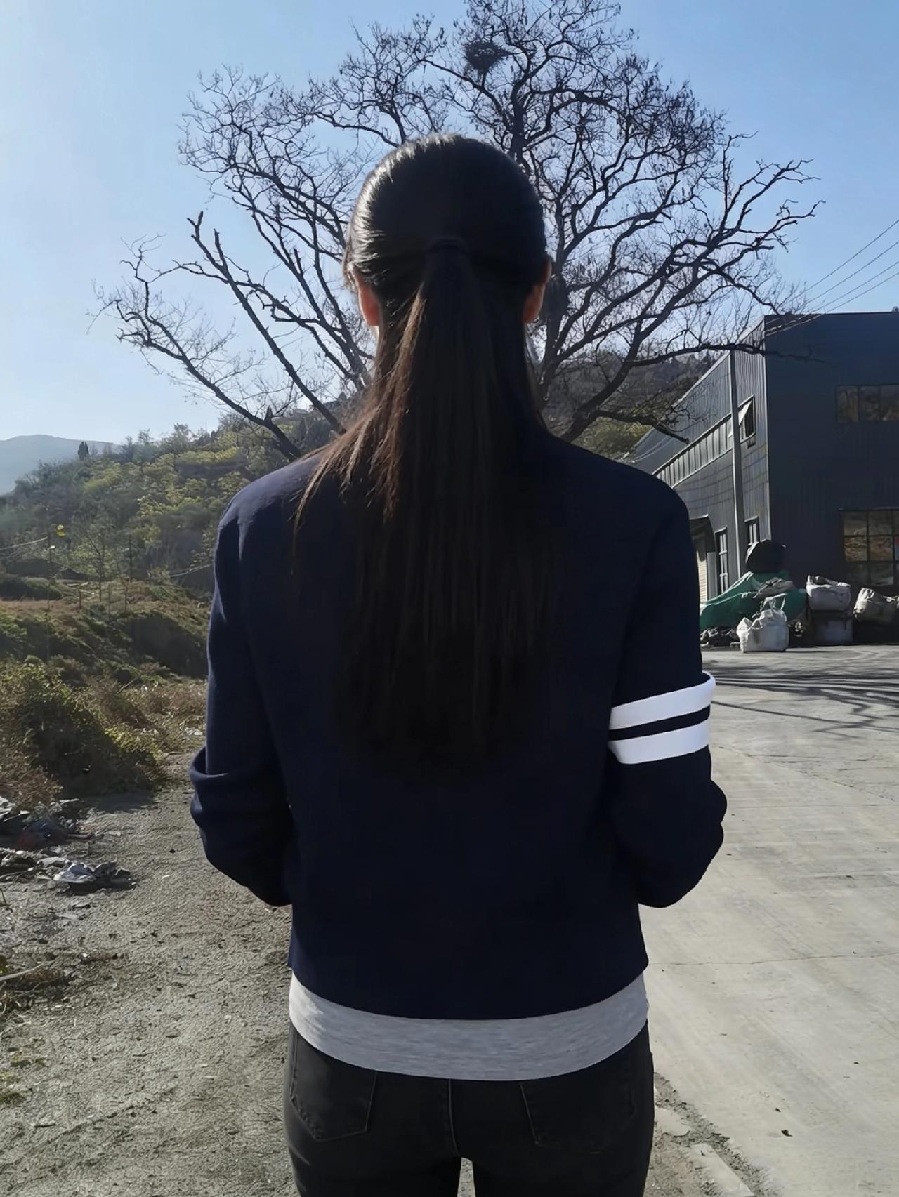 藏青色的外衣,融进了山的阴影 白条纹是劈开黑暗的光,落在臂弯 她的背影,对着枯树与厂房 像一根扎根的草,在荒芜里站成坚韧 ~ 马尾垂落,发梢扫过衣摆 扫过身后的路,与身前的未知 郊野的风,掠过她的肩 掀动藏青的布料,却掀不动她的沉默 ~ 枯树的枝桠,伸向天空 像她未说出口的向往 厂房的灰,衬着她的衣 却衬不出她心底的热烈 ~ 背影里的故事 都藏在向前的姿态里 在这荒芜之地 生长出独属于自己的春天