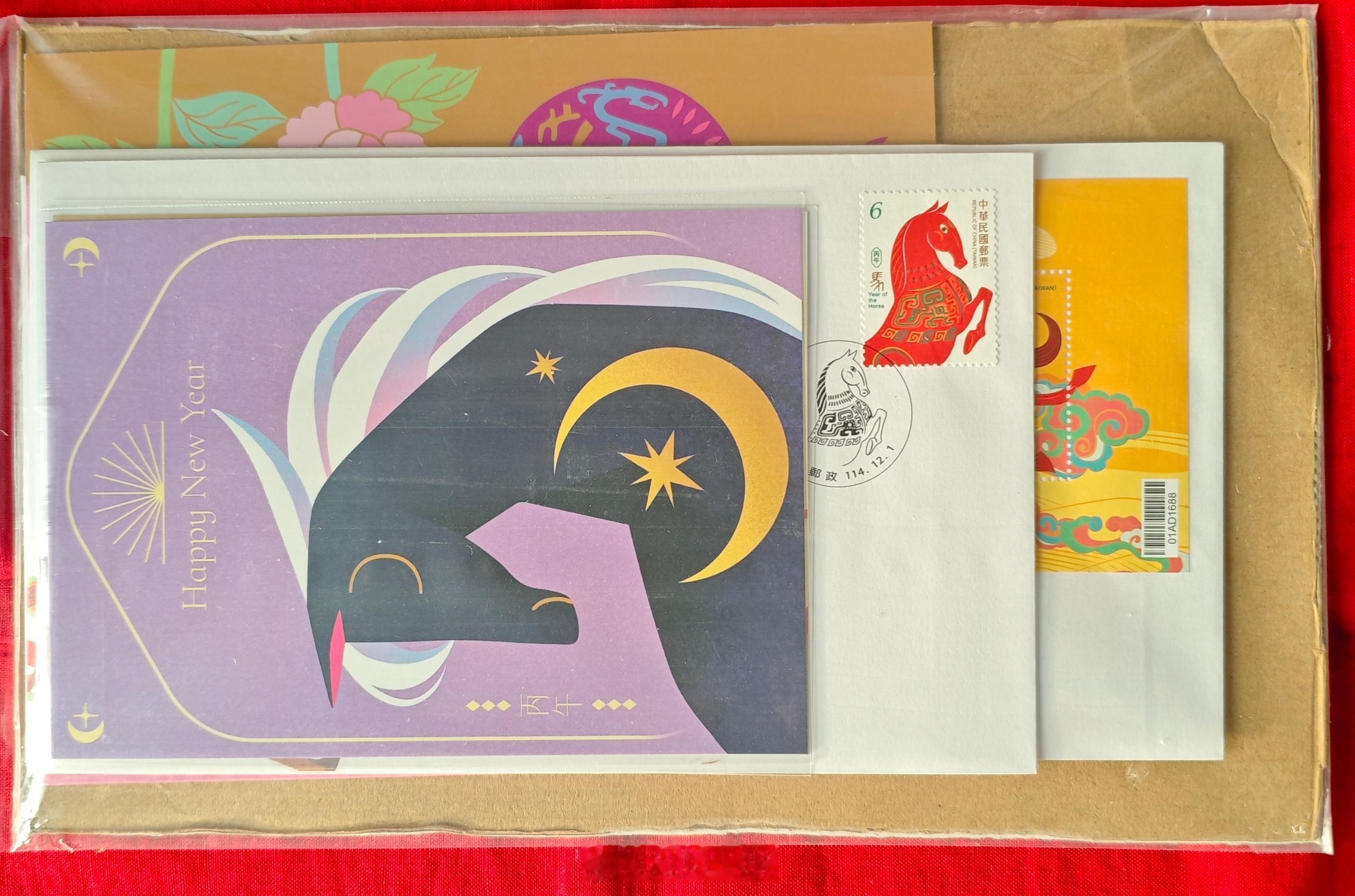 今天收到了台湾朋友陈穗铮女士赠给我的一套2026年(丙午年 马年)邮票和首日封等。陈穗铮当过我在台湾远流出版公司出版的《大清后妃写真》和《清皇陵地宫亲探记》两本书的责任编辑。在出版过程中,她知道了我是集邮爱好者。所以每到新年到来之际,往往都给我寄来一套新的邮票和邮品。去年就是12月20日收到的,今年又是这个日子收到了。 我是从初中就开始搞集邮的。一开始是自制集邮册。还订阅过《集邮》杂志,并在上面发表过文章。自从人人有了手机,特别是都用微信联系以来,很少写信了。这样搞集邮就受到了巨大的冲击。几乎处于停顿状态。