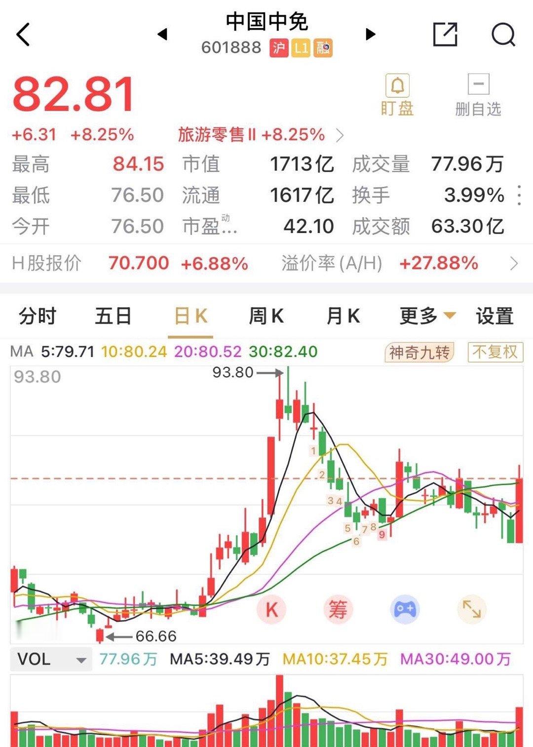 中国中免这免税店概念龙头,大涨8.25%,盘中一度涨停,可惜资金封板意愿不强,涨幅与旅游零售板块涨幅相等。海南正式封关,未必在短时间内能有效提升其经营盈利能力,近两年连续同比下跌的净利润及营收,是否能真正的改善才是值得关注的重点。中国中免42倍的估值,需要年度至少增长30%才能够匹配共估值,26年的预期应至少盈利60亿元左右。这能做到吗?中国中免曾经股价超400.0元,一波轰轰烈烈的行情下,又回到了原点,留下了满地鸡毛,现价如今仅股价高点20%左右。