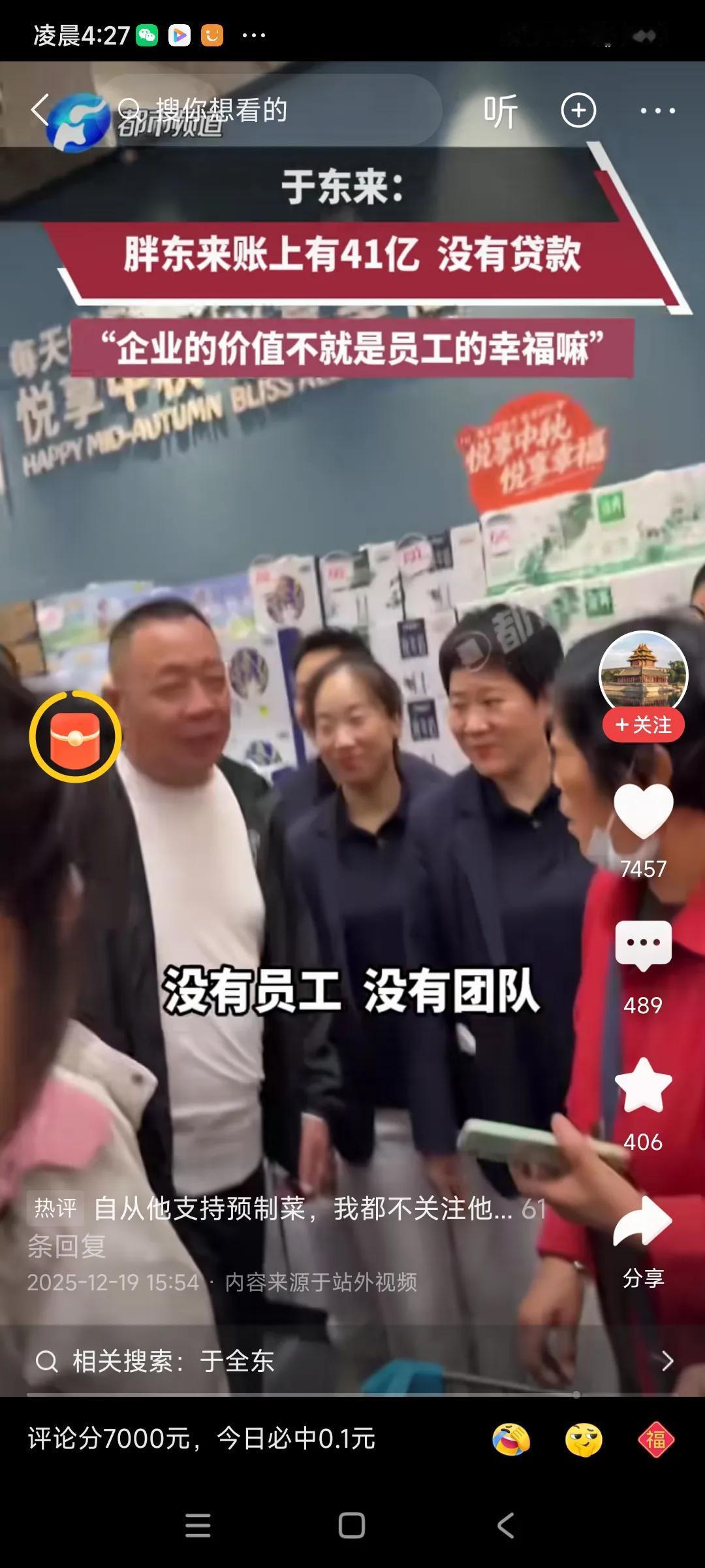 我非常好奇,这个胖东来是一家神奇的公司,年销售额几百亿,怎么会没有贷款呢,而且帐上还有41亿,公司运作的太好了,非常非常的安全,, 有的房地产公司资金来源贷款占了一大半, 有的科技类,高科技公司贷款有上千亿,, 有的新能源汽车,贷款也有几千亿,, 这个胖东来怎么做到的,生意火爆,员工高薪,资产安全,前途一片光明,,, 当然有人会说,胖东来是流通类商业企业,所以不差钱,这个说法不成立,,[捂脸][捂脸] 我就在商业企业工作,我公司的外面贷款几百亿,自有资产当然也有几百亿,,[捂脸][捂脸]