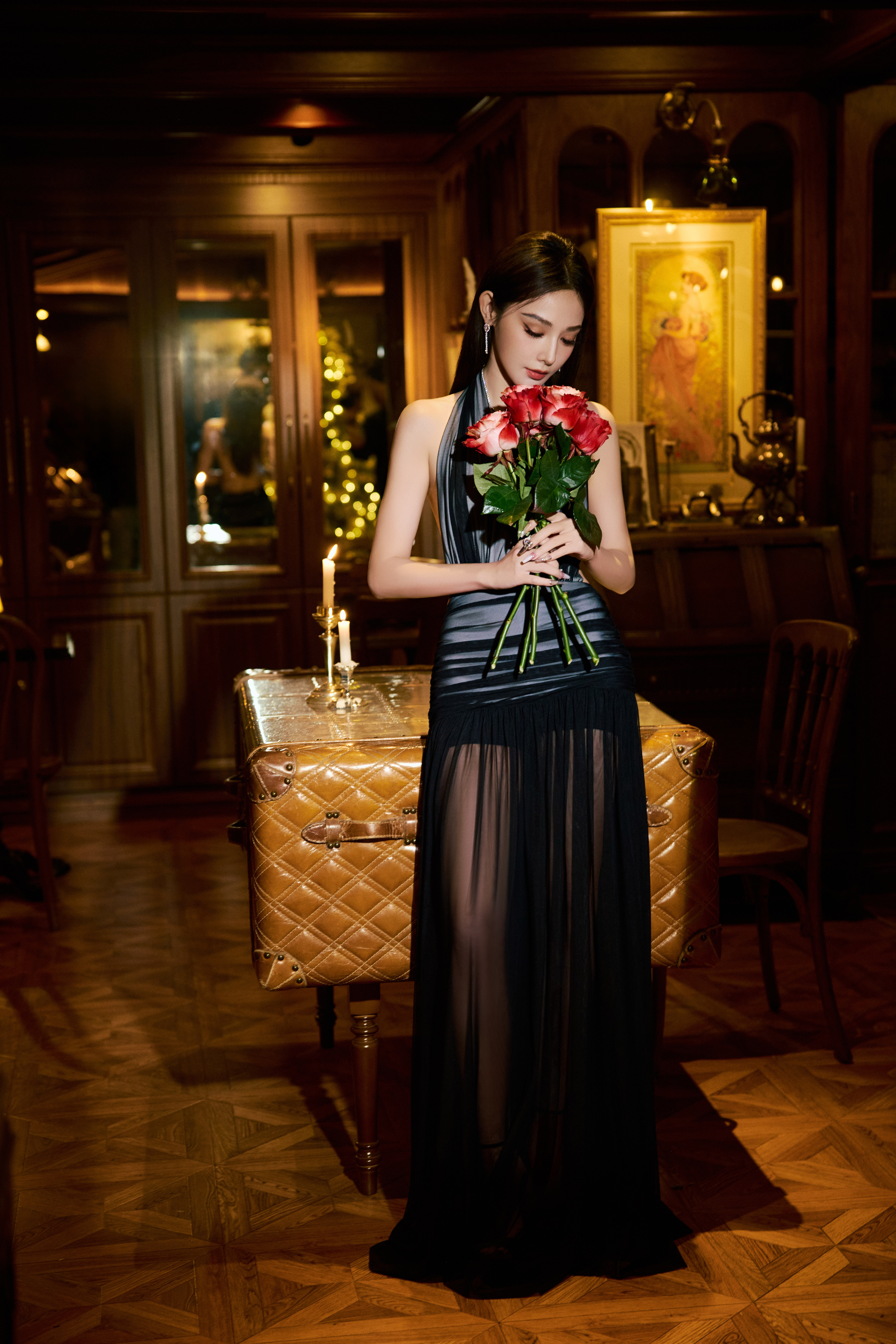刘亦菲喝醉酒微醺的状态被拍到,脸上已经泛起了红晕,被拍到后眼神微怒