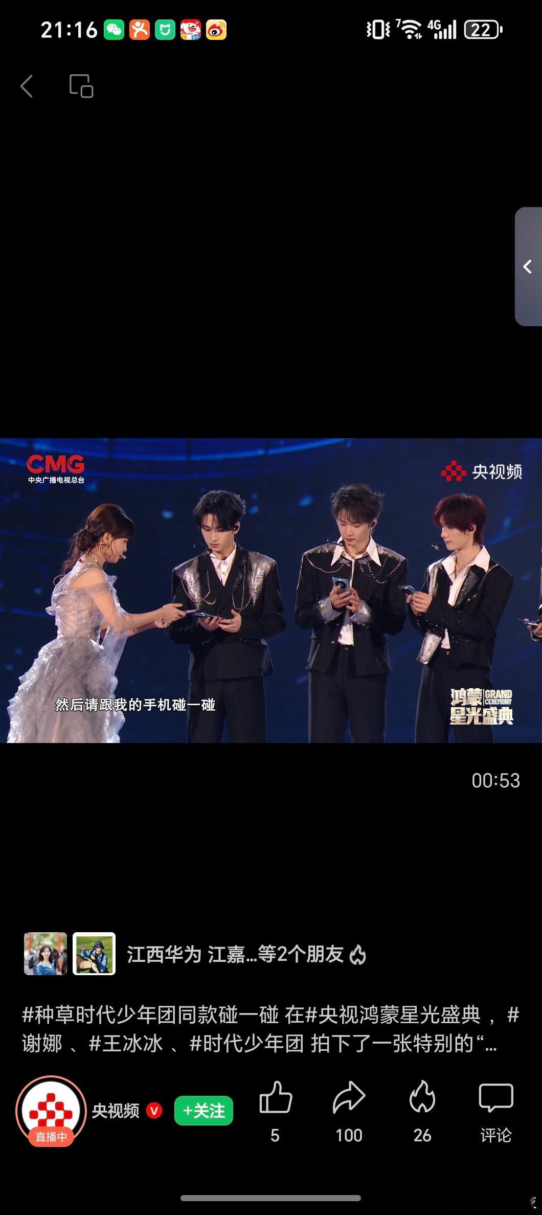 央视鸿蒙星光盛典 今晚群星璀璨共赴鸿蒙星光盛典现场王冰冰还和时代少年团现场展示了鸿蒙星光“碰一碰”传照片的“黑科技”!任嘉伦寸头新照太帅了,姚安娜也倾情献唱,还有给人前进力量的回春丹《鲜花》