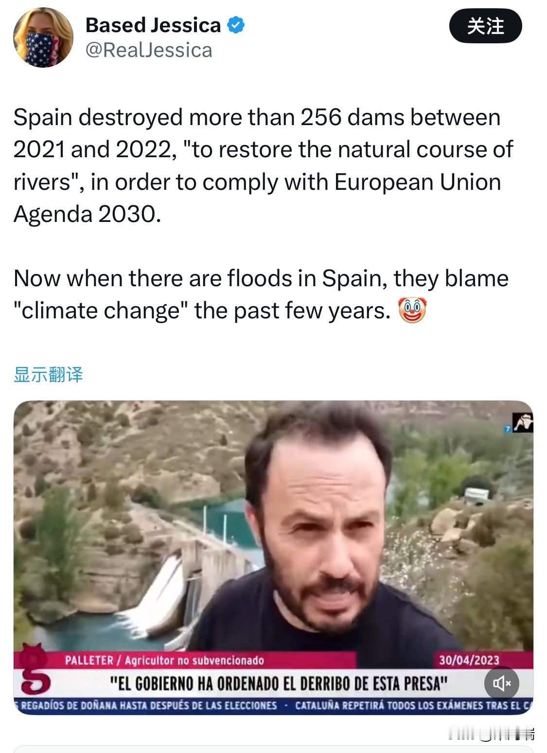 西班牙在 2021 年至 2022 年间拆除了 241座水坝,履行 欧盟 2030 年生物多样性战略,旨在恢复 2.5 万公里的河流自然流向,改善鱼类洄游环境。 根据“欧洲拆坝”(Dam Removal Europe)报告,西班牙在 2021 年拆除了 108 座,2022 年拆除了 133 座,两年共计 241 座。 西班牙气象部门(AEMET)和气候科学家指出,2024 年发生的严重洪灾是由于强烈的 DANA(高空孤立低压) 气旋造成的,其降雨强度受地中海变暖等气候变化因素显著加剧。