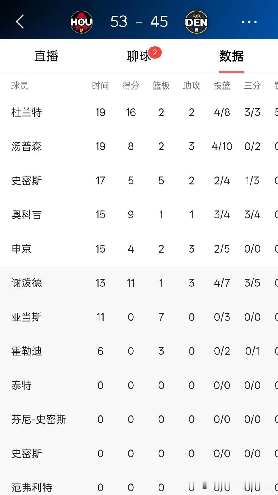 火箭半场表现不错,最值得夸的就是奥科吉与谢波德。阿门汤普森还是别投篮了,做好防守就行。杜兰特依旧是定海神针,目前53-45领先8分,加油火箭。