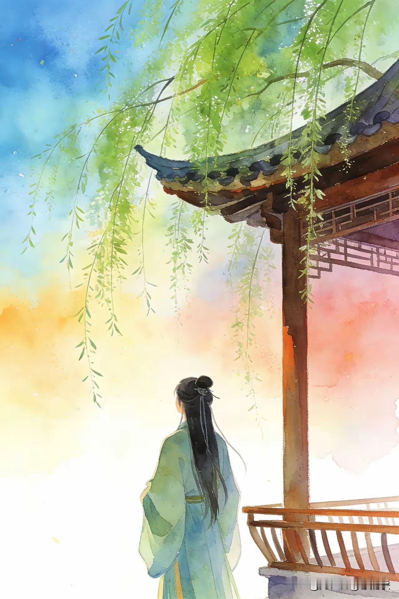 长亭折柳记当时, 别后风尘两鬓丝。 万里关山明月夜, 天涯此时两相知。