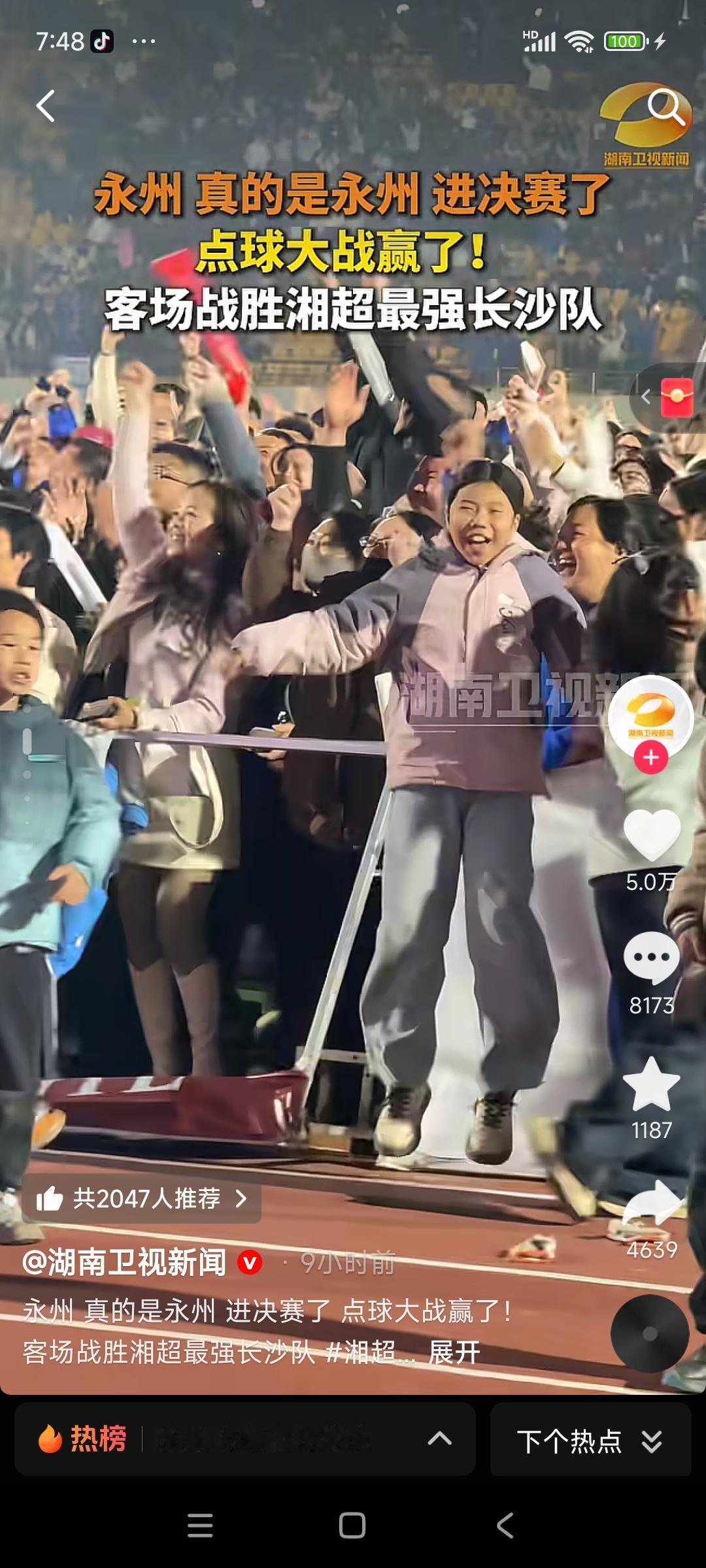 湖南永州队就是苏超泰州队! 他们同样半决赛点球淘汰省内老大哥长沙。 永州人对冠军也更加渴望,看好他们夺冠。 我就是没想到这次湖南球迷这么热情。[偷笑]