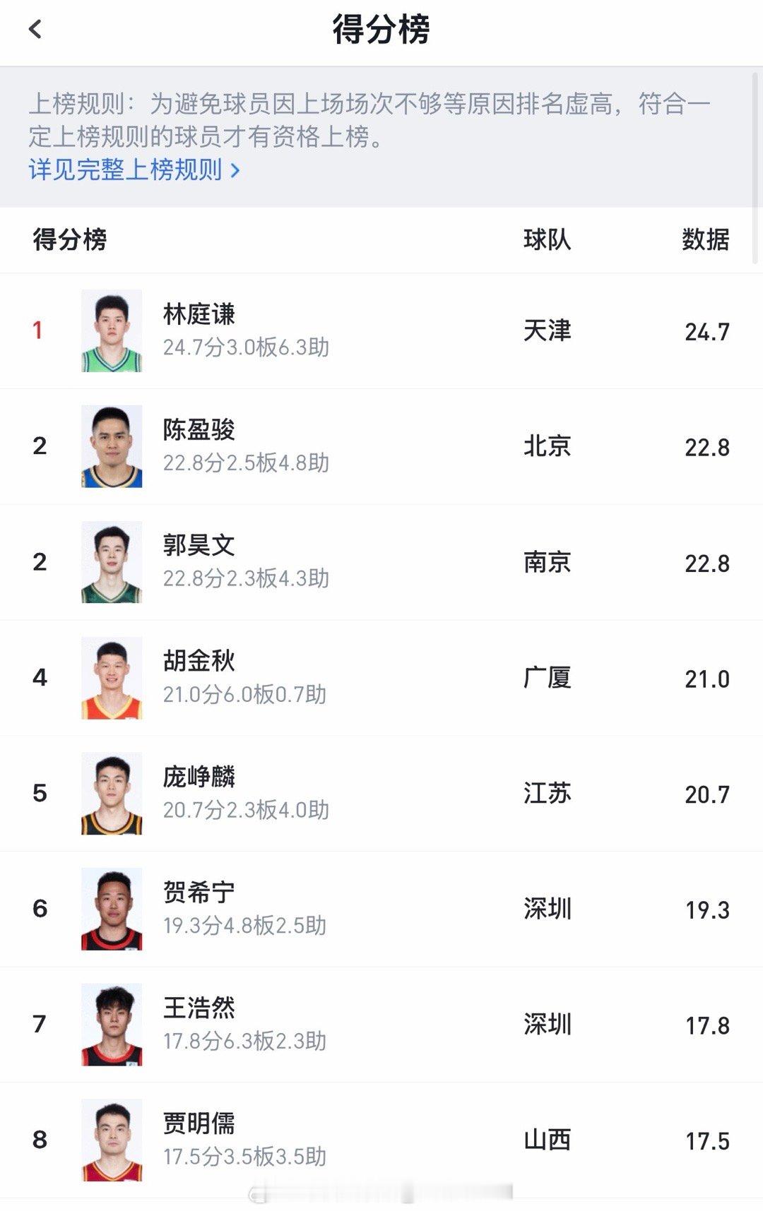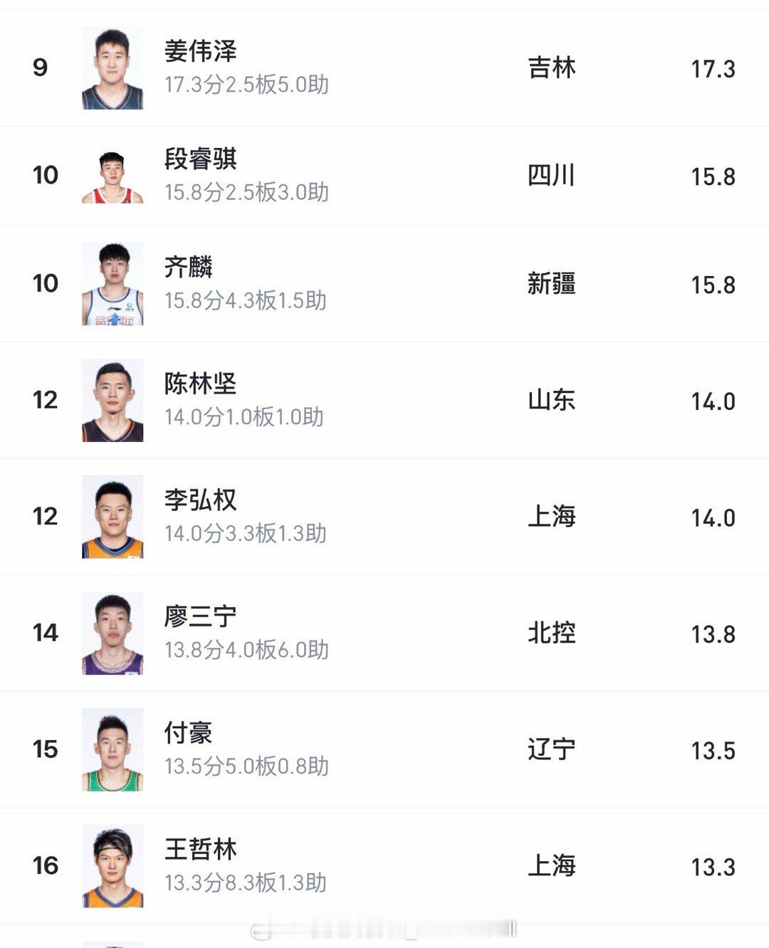 目前联赛本土球员得分榜前16名只有胡金秋和廖三宁是输给韩国的那支国家队的,排在前两名的本土球员还是省队的,下一阶段郭指导要认真选球员了