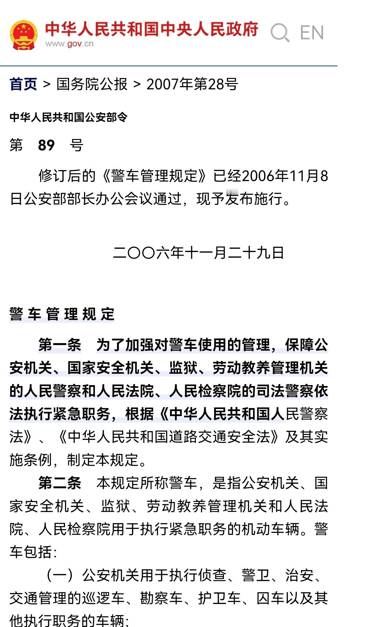 执行公务的警车必须无条件得让进;非执行公务,按社会车辆对待、按流程进入(务请警车驾驶员配合执行)。