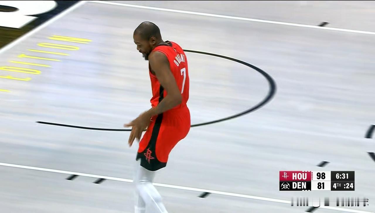 火箭老将杜兰特真是一个大逗比,他太搞笑了!在今天火箭客场挑战掘金的比赛中,当时比赛进行到了第四节的六分多钟,杜兰特在右侧45度投进了一记标志性的干拔三分,不仅帮助球队将场上分差扩大到了17分,而且打停了掘金。值得一提的是,在暂停期间,心情大好的杜兰特直接在场上跳起了舞,那曼妙的舞姿真是让人忍俊不禁。