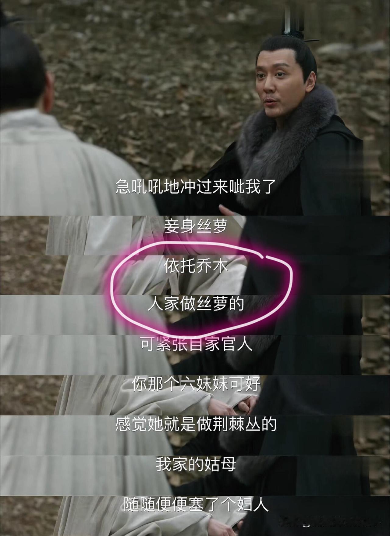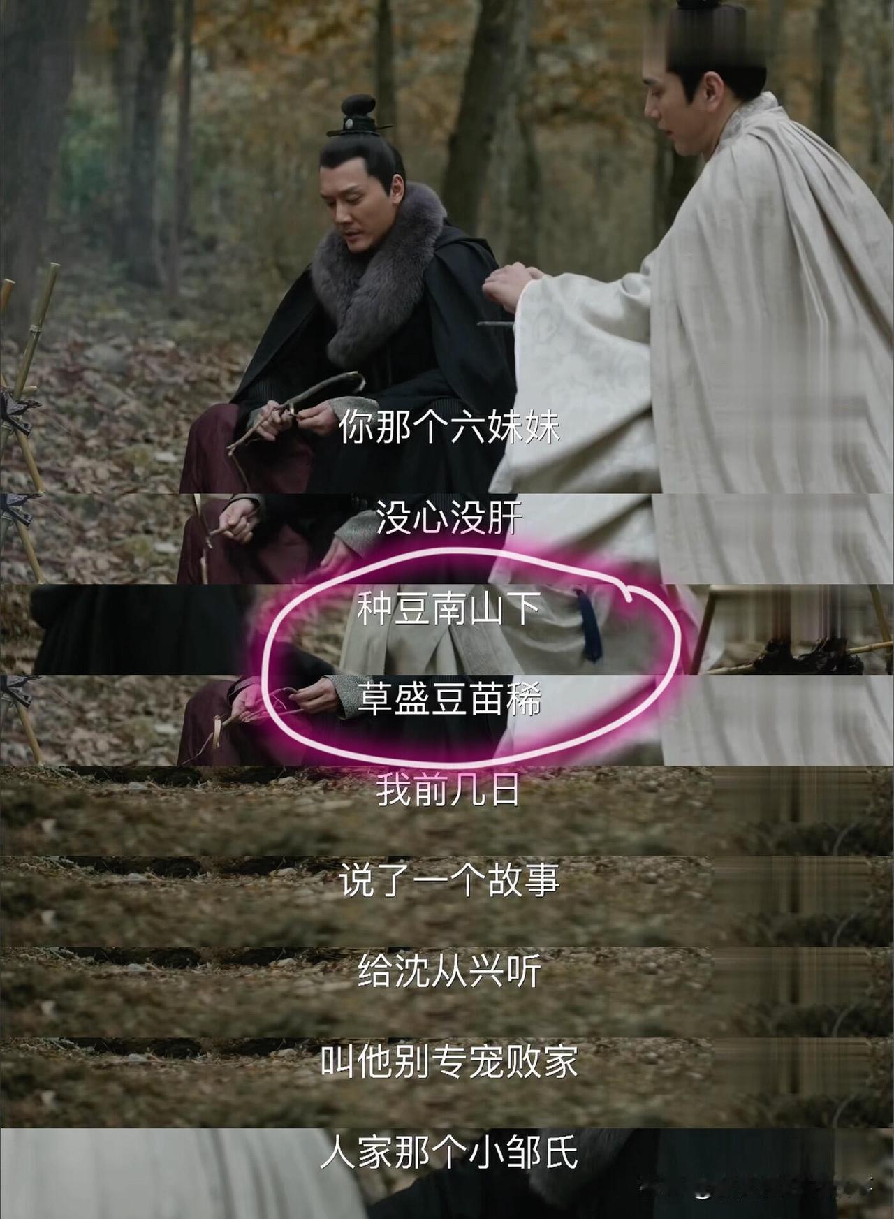 这段剧情中提到的诗句很多人看不懂长柏说的啥意思?其实就是顾二为明兰的“疏离”愁得抓心挠肝,长柏随口几句诗,直接把他的小心思扒得明明白白! “种豆南山下,草盛豆苗稀”,说的就是顾二本人吧!费尽心思娶到心上人,掏心掏肺对她好,满心期待收获浓情蜜意的爱情,结果明兰全程把他当“东家”,一心只想着贤惠持家、稳住后宅。他想要的“爱情豆”没长起来,“贤惠草”倒是长得比啥都茂盛,纯纯的努力错了方向,做了无用功!还有人调侃这是说顾二努力半天没孩子,这个脑洞我给满分哈哈。 再看“妾身丝萝,依托乔木”,小邹氏就是典型的丝萝,没了沈将军这棵乔木就活不了,所以才会因为顾二的干预炸毛。反观明兰,她根本不是菟丝花,她清楚好是要还的,不敢也不愿像小邹氏那样对着“老板”撒泼,和顾二更像并肩作战的战友,这也是顾二郁闷的点——别人家媳妇缠着丈夫,就盛小六不在乎他! 至于“欲治其国,先齐其家”,长柏这话简直是护短天花板。明兰纳妾不是不争不抢,是为了稳住姑母和小秦氏,营造安定的后宅环境,只有家里消停了,顾二才能安心搞事业。可惜顾二没get到,一门心思陷在“明兰不爱我”的情绪里。 最后“脉脉不得语”直接点破核心:他俩明明都在乎对方,偏偏一个在搞事业频道,一个在恋爱频道,隔着银河似的,就是不把话说明白!长柏这哪是吟诗啊,分明是把“你俩赶紧把窗户纸捅破”写在了诗里,可惜热恋期的顾二是个智障,愣是没完全听进去! 不得不说,长柏和顾二这对挚友是真的同频,聪明人说话就是点到为止,句句在理,看似乱回,实则精准吐槽! 你们觉得长柏说这些话的时候,心里是不是还在偷笑顾二“活该”啊?