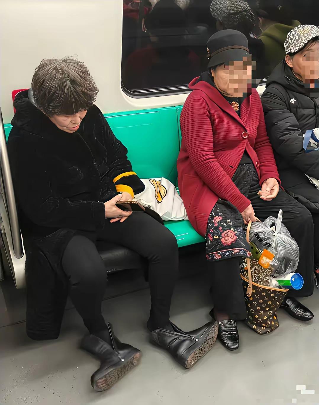 大妈本事真不小,随心所欲谁也管不了 某地铁车厢里,一位头发花白年近7旬的大妈,上车后她穿的高筒靴,有点挤脚不舒服。便随心所欲把靴子脱掉,把双脚放在地上,自己闭目养神。 然而,大妈是个汗脚,那味道在密闭的车厢里,散发着一股难闻的臭味,把旁边的一对老人熏得无语了。老人心里嘀咕道,这大妈素质低下,公共场合露出汗脚,太不文明了。