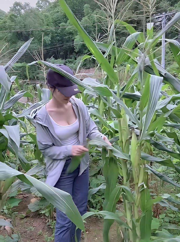 踩着田埂上的青草,朝着玉米地的深处迈步而去,粉色衣袂在绿意里漾开好看的弧度。麻