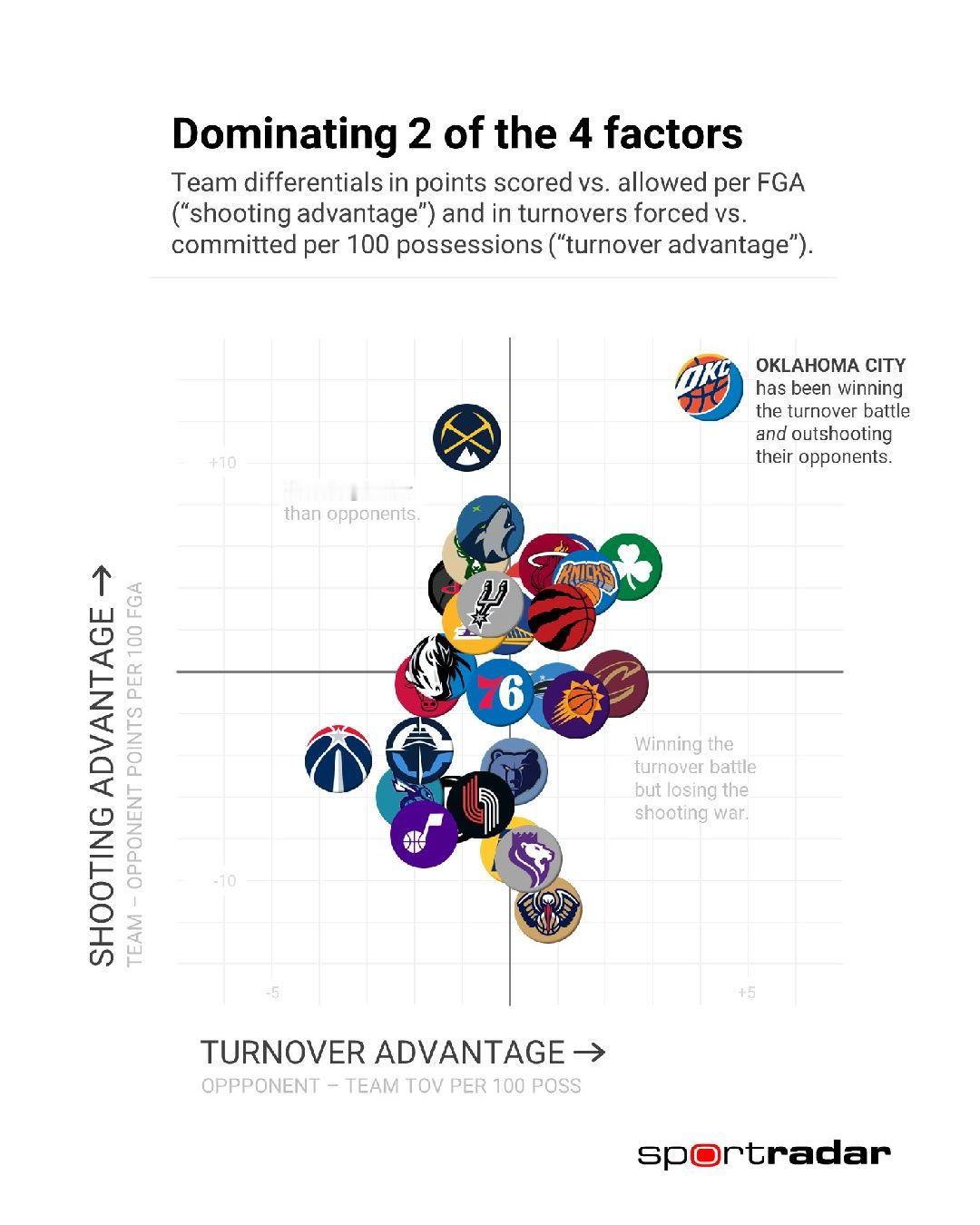 雷霆这赛季太超模了,进攻端,eFG%第三高,失误率第2低,防守端,对手eFG%联盟最低,对手失误率联盟最高新赛季篮不住NBA