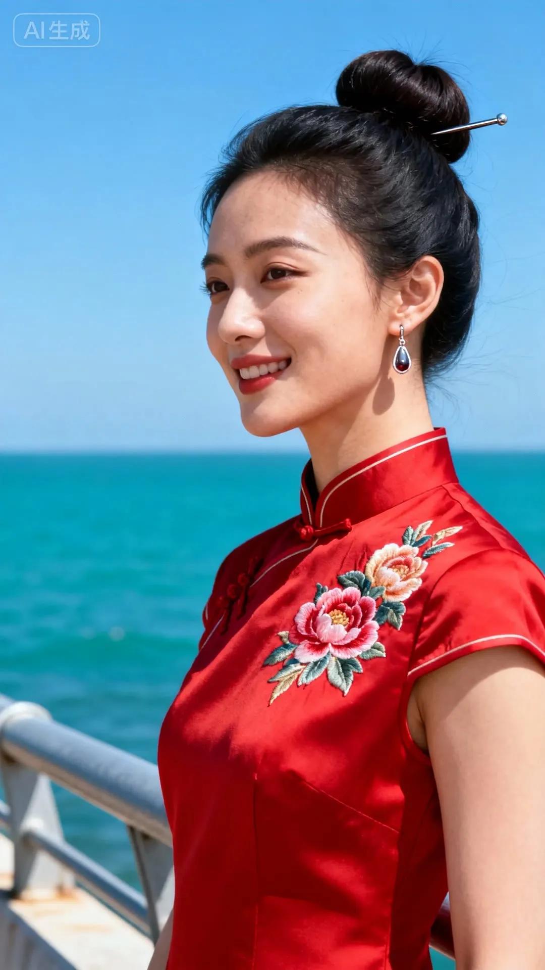 这位姐姐简直是美的典范!灰绿旗袍上身,流苏袖添灵动,迷彩长裙开叉露美腿,曲线玲珑