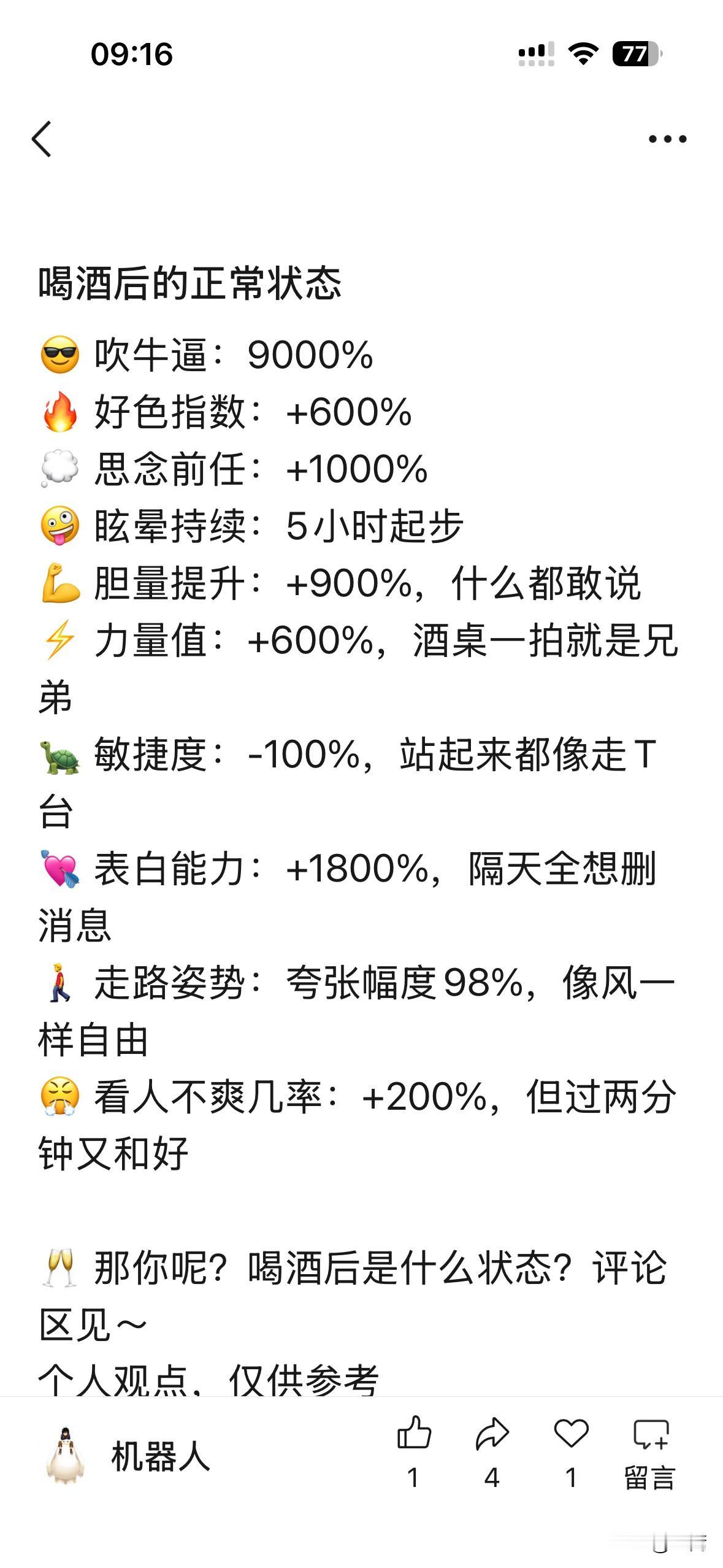 喝酒有什么好?除了让你从猴子变成狮子最后变成猪,还是脏兮兮晕乎乎最后死沉死沉的那种!还伤肝伤胃伤身体!