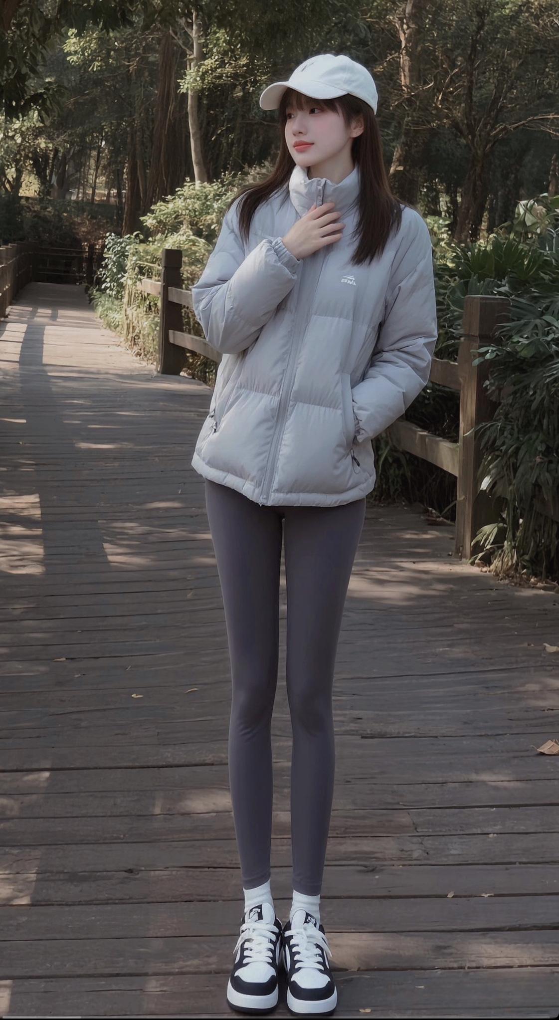 冬日雪景中的时尚穿搭,黑色羽绒服搭配高跟鞋,尽显优雅与温暖。