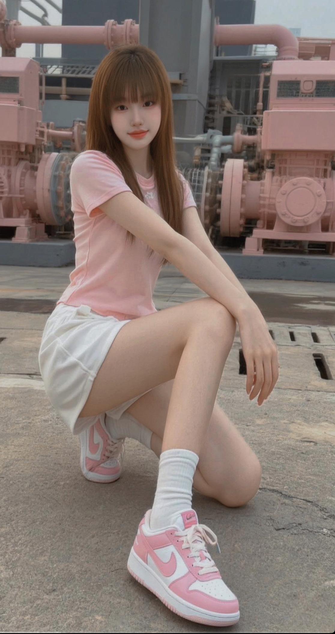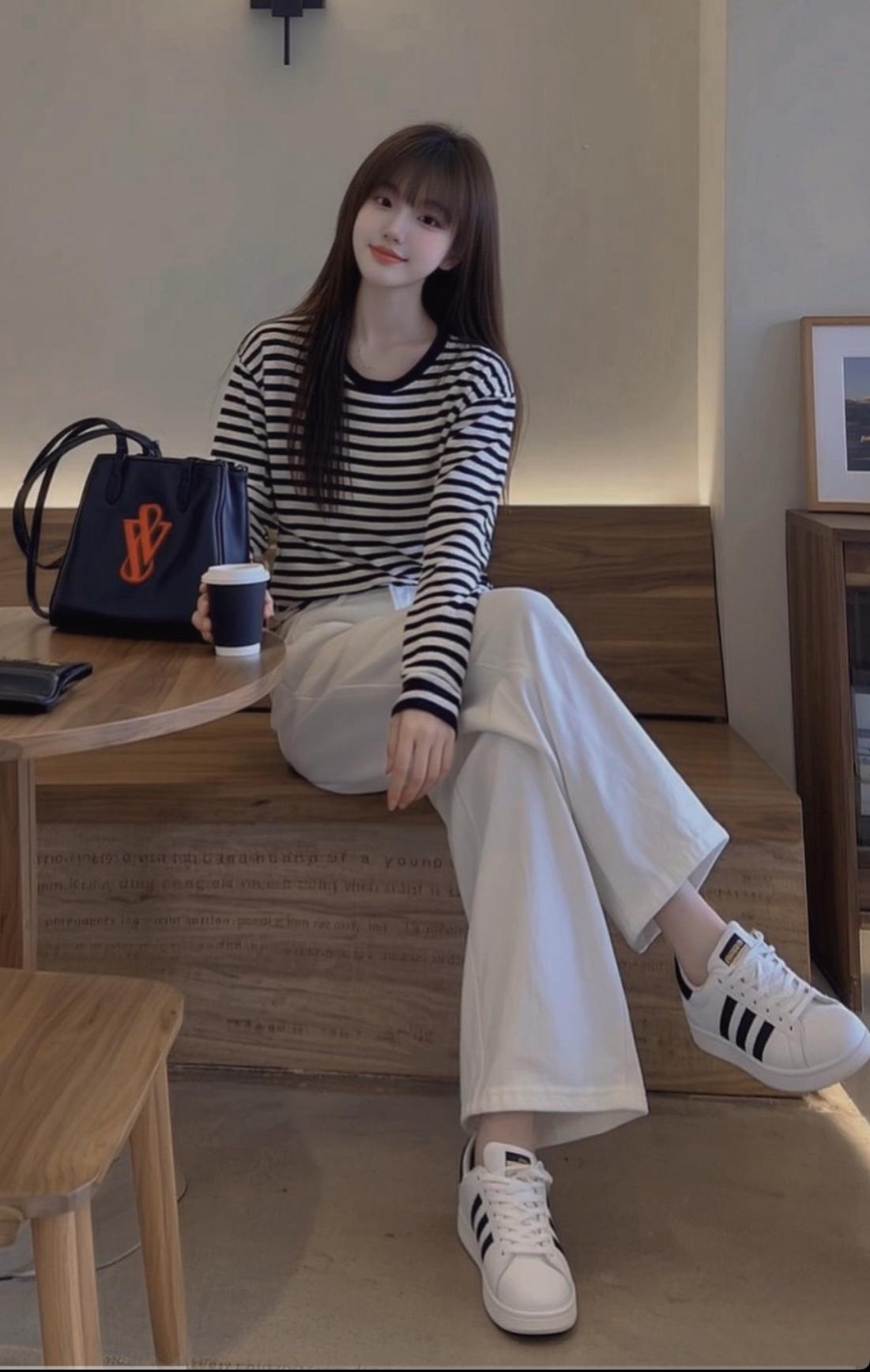 优雅气质,浅驼色长裙,木栈道上的静谧时光。