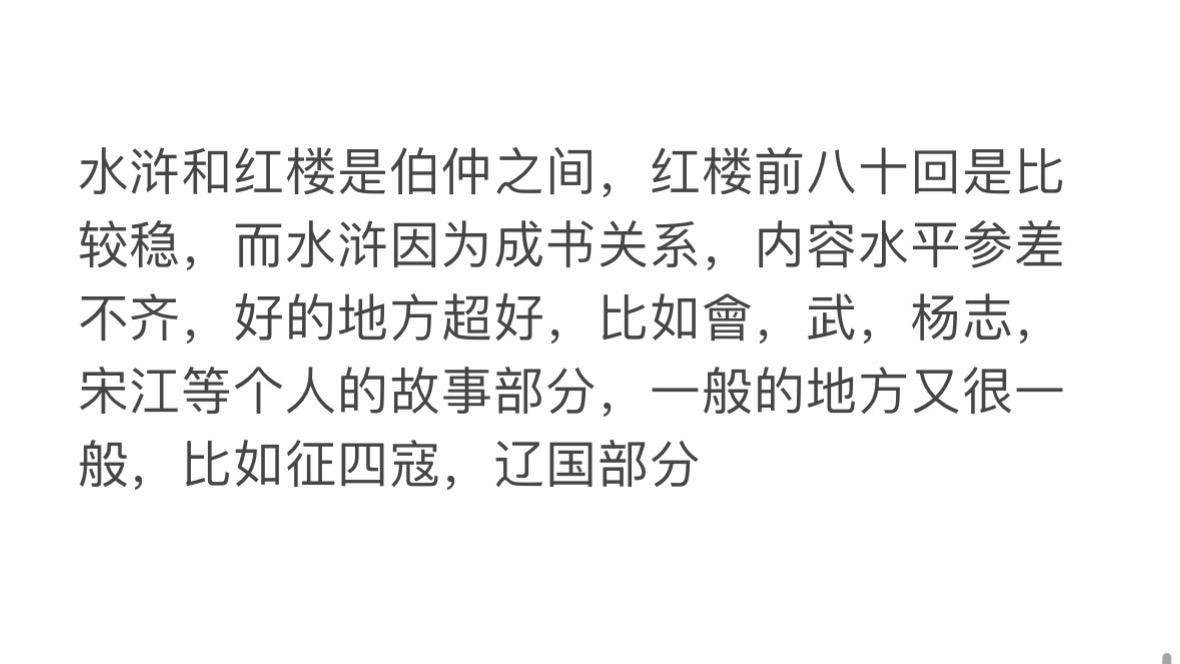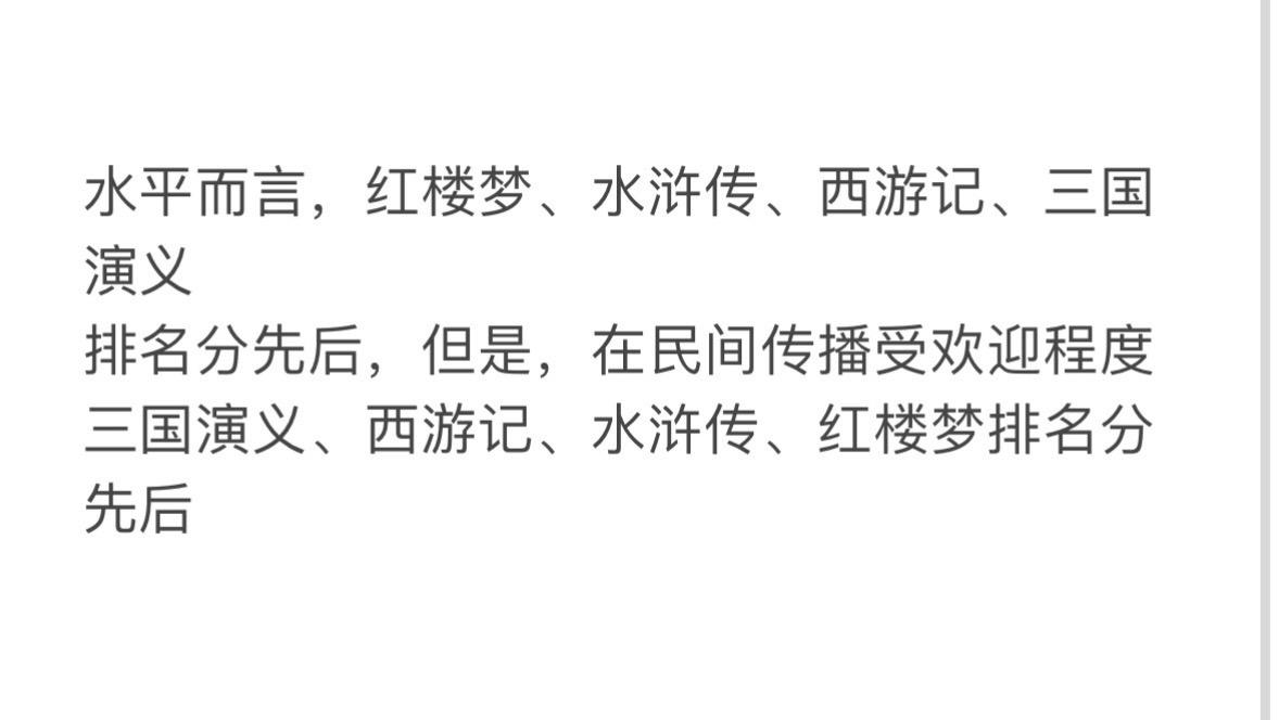 每日一问,中国的四大名著中哪一部的文学水平相对而言最低?