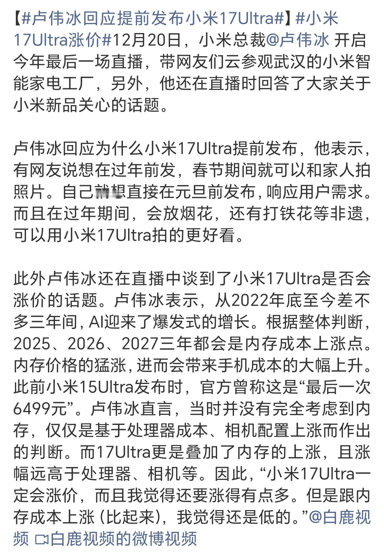 小米17Ultra涨价用户说想年前拿到手机春节用,居然能左右一个公司的新机发布节奏?真这么在乎用户,那还涨什么价啊,必须连夜说服高管,不赚钱亏本交朋友……
