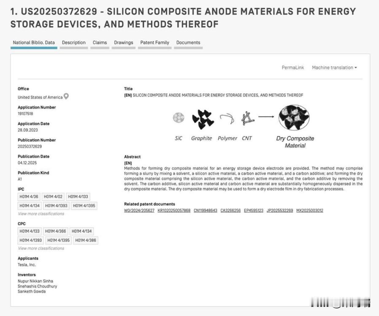 根据最近公开的专利文件和行业分析,特斯拉似乎已经找到了在4680电池的干电极制造工艺中使用高比例硅材料的方法。 该技术突破围绕一项名为“用于能量存储装置的硅复合负极材料及其方法”的专利(美国专利号 US20250372629)。 长期以来,将硅材料(能显著提高能量密度)整合到特斯拉的干电极制造过程中一直是一个巨大的技术挑战,因为硅颗粒在没有液体溶剂的情况下容易结块,导致电极开裂或机器堵塞。 新专利描述了一种特定的复合粘合剂配方和高剪切喷射研磨工艺,能将材料制成具有特定“蜘蛛网”微结构的柔性薄膜,从而使脆性粉末在卷绕过程中保持完整。 新的粘合剂配方使得制造过程从传统的需要十次辊压减少到仅需三次即可形成内聚薄膜,这有望将生产线速度提高两倍,解决长期存在的量产瓶颈问题。 影响与前景 更高续航和更低成本,成功实施全干电极工艺是实现4680电池承诺的关键,有望使电池包成本降低54%,并将续航里程增加16%。 这一技术进步可能使得高容量硅材料最终能够用于特斯拉的量产车型,推动更低价位的电动汽车(如传闻中的2.5万美元车型)成为现实。 此外,这项技术不仅限于4680电池,未来还可能应用于固态电池的生产方法,并有望通过技术许可等方式影响整个电动汽车行业。