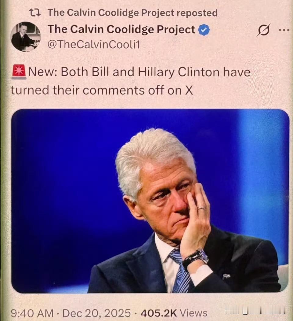 最新消息:比尔-克林顿和希拉里-克林顿都关闭了在X平台账户的评论!