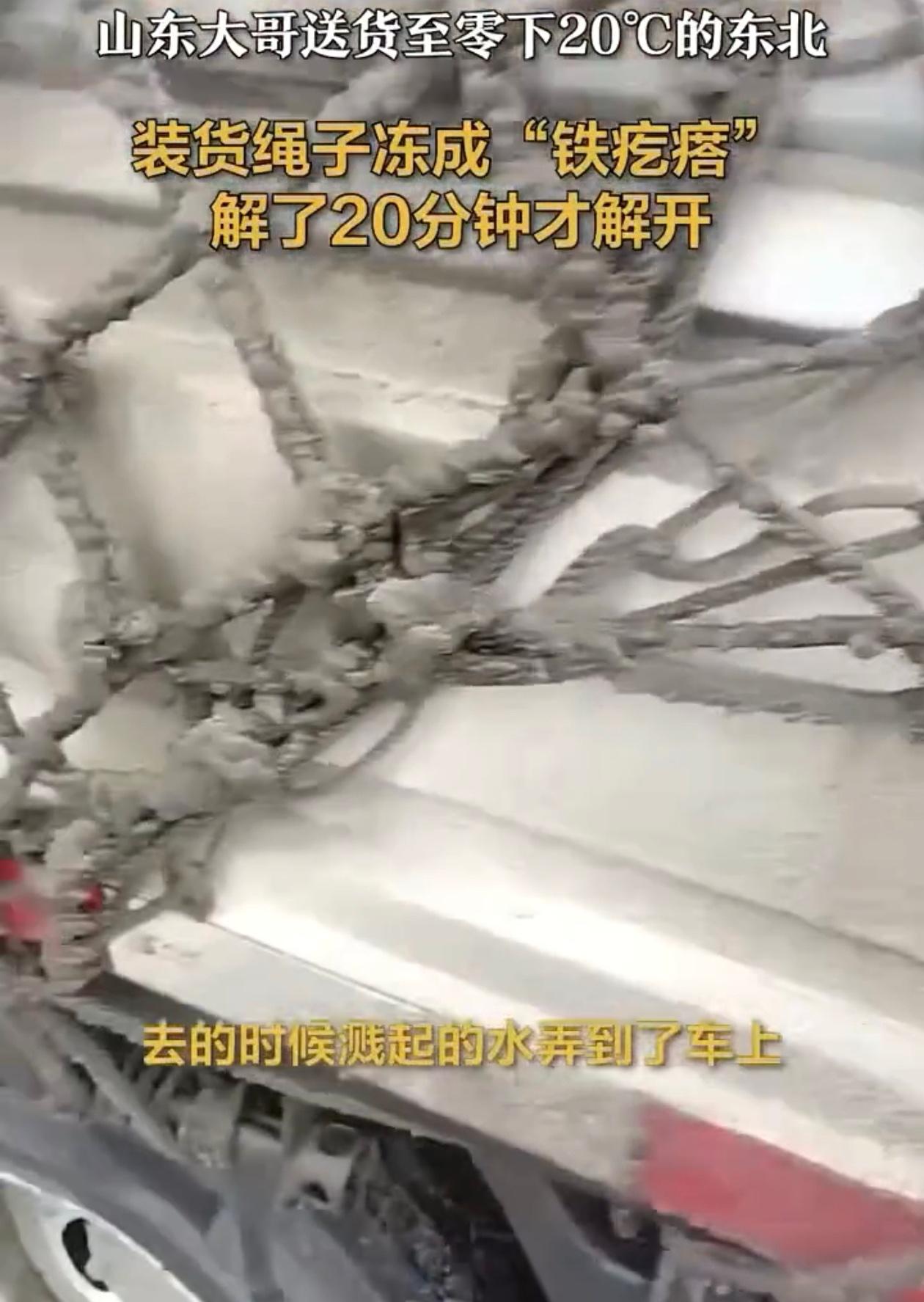 山东一大哥开货车送货,这次拉到哈尔滨,到了地方准备卸货,解捆货的尼龙绳,手一摸硬邦邦的,跟铁棍似的,绳结冻得死死的,根本掰不开。 大哥愣了,低头看看绳子,上面裹了一层冰,亮晶晶的,这才想起来路上经过水坑,水溅到绳子上了,哈尔滨零下二十度,早就冻实了。 他试着用手抠绳结,指甲扣上去跟扣石头一样,纹丝不动,手冻得疼,赶紧缩回来哈气,搓了搓手,跺跺脚,这才暖和点。 没办法,大哥从车上翻出铁棍,对着绳结敲,当当当响,敲了几下冰碴子掉下来,绳子松动一点,继续敲,手又冻麻了,停下来搓手。 就这么敲一会儿、搓一会儿手、跺一会儿脚,反复折腾,旁边路过的哈尔滨本地人看他这样,笑着说习惯就好,冬天这边啥都能冻,毛巾能冻成棍,湿衣服拿出去直接立起来。 大哥听完直摇头,说山东冬天最冷也就零下几度,穿个厚外套就行了,哈尔滨这零下二十度,羽绒服都不管用,脸都冻木了。 前前后后折腾了二十多分钟,绳子终于解开了,大哥手都冻红了,赶紧钻车里暖和,开着暖风缓了好一会儿才开始卸货。 卸完货大哥发了条视频,说这次真见识到东北冬天的厉害了,以前听人说哈尔滨冷,没概念,这回体会到了,绳子能冻成这样,头一回碰见。 网上有人笑他大惊小怪,说东北冬天冻绳子算啥,汽车玻璃水不换防冻的直接冻裂水箱,电瓶冻没电打不着火,轮胎冻硬了开起来颠得慌,这些才叫常规操作。 也有南方人跟着喊冤,说他们去东北旅游,睫毛都能冻上冰碴,手机掏出来一会儿就自动关机,充电宝冻得一点电都没有,回室内才缓过来。 还有东北老铁现身说法,冬天在外面干活必须戴手套,不戴手碰金属能粘上,舌头更不能舔铁栏杆,真会粘住,得用热水浇才能弄下来。 大哥看完评论说下次来东北提前准备,多带几副手套,绳子提前检查别沾水,实在不行就在室内卸货,室外这温度真遭不住。 这事儿提个醒,南方人去东北要做功课,保暖装备得齐全,别以为穿够就行,那边冷起来跟你想的不一样,提前了解当地情况,少吃点苦头。 你们去过最冷的地方是哪里。