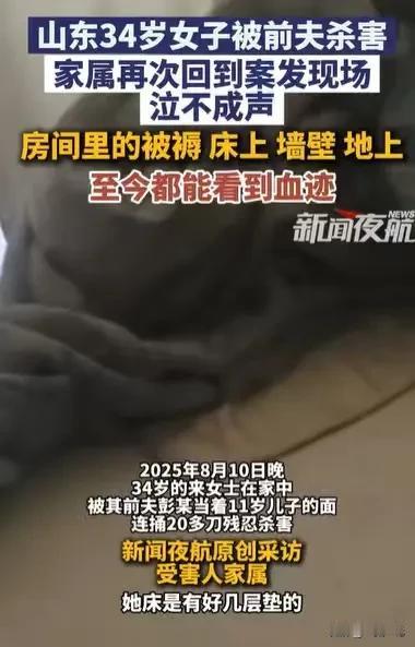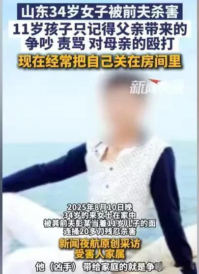 山东,男子和前妻已经离婚3年了,当他得知前妻和男朋友订婚了,他气不过,就以要看11岁的儿子为由,让儿子开了门,男子就当着11岁儿子的面,连续在前妻身上捅了20多刀,结束了前妻的生命,儿子问他:“为什么要杀了我妈妈?”男子说:“谁让她找了别人!” “舅舅,是不是我不开门,我妈妈还活着。”孩子痛苦地说着,心里非常自责,爸爸当着他的面,连捅了他妈妈二十几刀,这一幕深深地烙进了他的心里,久久挥之不去,自从妈妈走了,他每天晚上,每天晚上地做噩梦,常常醒来,眼角都是泪痕。 那一幕实在是太恐怖了,一个是爸爸,一个是妈妈,却让他看到了最残酷的一幕。 回想起当时的一幕,孩子心惊胆战,眼神恐惧,浑身发抖。 事情发生在2025年8月10日,那天,孩子非常高兴,妈妈告诉他,爸爸要来看他了。 自从爸爸和妈妈离了婚,三年来,孩子和爸爸见面的机会就比较少,虽然他爸爸对他妈妈不是很好,所以妈妈才和爸爸离了婚,但爸爸毕竟是爸爸,孩子还是很想爸爸的。 他盼来了爸爸的敲门声,他兴奋地过去开门,他想和爸爸好好聚一聚,唠唠他最近的事情,可没想到一开门,他的妈妈就遭遇了不测。 他万万没有想到,爸爸是拿着刀过来的,当着他的面,就连捅了他妈妈二十几刀,他眼睁睁地看着妈妈倒在血泊中,而他却无能为力。 那一刻他心如刀割,最爱他的妈妈就这样离开了他,还是他开门让爸爸进来的,如果没有开门让爸爸进来,妈妈是不是就不会这样离去。 他痛苦地问爸爸:“你为什么要杀我妈妈?” 他爸爸冷冷地说道:“谁让他找了别人!” 孩子惊呆在原地,那一瞬间,他的整个世界都崩塌了。 悲剧就这样发生了,为什么孩子的爸爸彭某,一定要置前妻与死地呢? 原来彭某是一个脾气很暴躁的人,前妻就是受不了他这个脾气跟他离了婚。 自从孩子从懂事起,孩子就亲眼目睹了他们的争吵,目睹了爸爸经常责骂,殴打妈妈。 彭某不但脾气差,还爱打牌,在没有离婚的时候,就因为打牌欠下了百万,前妻是有努力挽回过家庭的,为了还帮他还债,前妻还卖了房。 可她的努力,在前夫的陋习前,不堪一击,生活难以继续下去。 前妻时常看着孩子,她无法说服自己继续过这样的日子,最终前妻在被责骂殴打中作出了决定,她要和彭某离婚。 他们是在2022年离婚的,离了婚之后,前妻带着孩子过上了稳定的日子,前妻的脾气本来就很好,又孝顺。离婚三年之后,她又找到了一个对象,对她特别好,并且对象爱屋及乌,也非常爱她的孩子,不但会帮孩子洗衣服,还会给孩子买榴莲。 人生难得找到好伴侣,前妻看着这么好的对象,当然愿意再次结婚,他们也顺利订婚了。 可她没想到,就因为她订婚了,前夫要剥夺她的生命。 其实她已经刻意保持和前夫的距离了,但是彭某却以看孩子为由要她开门。 来开门的是孩子,接着就发生了恐怖的事情。 自从发生了这样的事情,孩子内心受到了很大的创伤,他非常非常想妈妈,每天晚上,都要抱着妈妈的相册,才能睡觉。 但他的内心实在太害怕了,恐惧时刻缠绕着他,三个多月以来,他从不敢穿脱衣服睡觉。 他从原本一个开朗活泼爱笑的孩子,变成了一个呆呆的孩子,他经常将自己关在房间里,时常对自己说,是不是我不开门,妈妈就还活着,孩子深深地自责着。 孩子亲眼目睹这样的事情,这件事肯定会跟随他的一辈子,让孩子走出这件事的阴影,或许要一辈子的努力。 发生这样的事,孩子的舅舅一家人,都非常心疼孩子,同时他们也非常愤怒,希望彭某被判死刑。 彭某做出这样的事情,他的行为无疑已经构成了故意杀人罪。 《刑法》第232条规定:故意杀人的,处死刑、无期徒刑或者十年以上有期徒刑;情节较轻的,处三年以上十年以下有期徒刑。 他是当着孩子的面,剥夺前妻的生命的,这情节非常恶劣,应当判处死刑。 彭某做出这样的事,其实最痛苦的是孩子,或许孩子一辈子都会后悔自己开门。 当彭某做了这样的事,孩子不但失去了父爱,也失去了母爱,更失去了幸福,或许长大之后,还会失去爱人的权利。 那么你对彭某的行为有何看法?