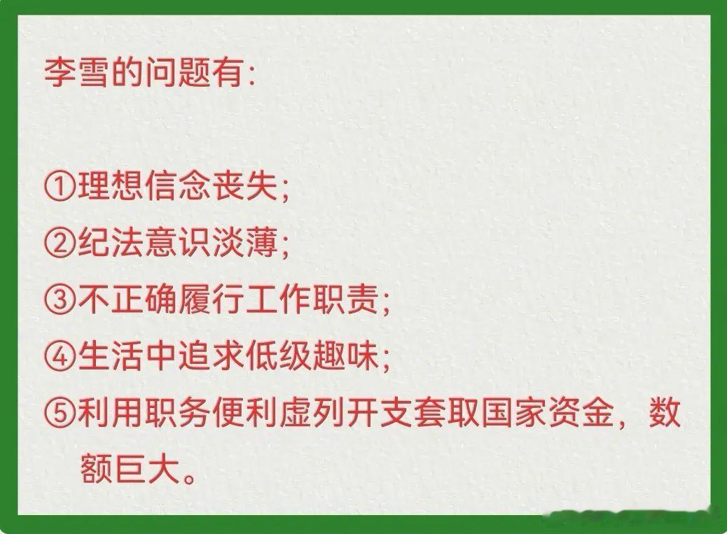 【李雪,女,92年生!追求低级趣味,违反生活纪律被双开!】近日,四川省盐源县民政局原“90后”干部李雪因严重违纪违法被查处,其堕落轨迹令人警醒。2016年参加工作后仕途顺遂的她,理想信念崩塌、纪法意识淡薄,不仅履职不力,更利用职务便利虚列开支套取国家资金,还沉迷赌博、网游,生活作风败坏,最终被开除党籍和公职,涉嫌犯罪问题被移送检察机关审查起诉。李雪案并非个例,近年来年轻干部贪腐案件频发。相关数据显示,在46起年轻干部贪腐案例中,近两成赃款用于赌博,超四分之一流向奢靡消费。这些年轻干部多手握财务、审批等关键岗位权力,有的利用信息化手段隐蔽贪腐,有的在“围猎”中迷失自我,风华正茂却“早节”失守,令人痛惜。深层根源在于权力与监督的失衡。部分单位对年轻干部重使用、轻监管,教育管理监督的精准性不足,让少数缺乏历练、警惕性不够的年轻干部,在诱惑面前定力尽失。年轻干部是事业发展生力军,必须牢记“清廉是福、贪欲是祸”。(来源 : 红色战友荐读 原创 : 燎原)